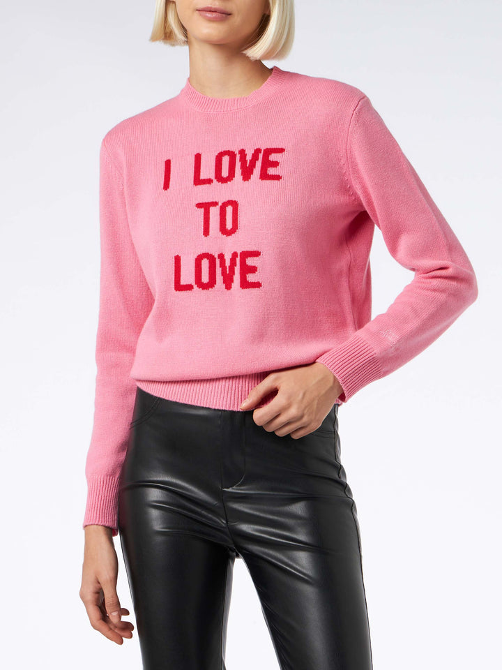 • Woman crewneck pink sweater I love to Love jacquard | NIKI DJ SPECIAL EDITION - MC2 Saint Barth Woman crewneck pink sweater I love to Love jacquard | NIKI DJ SPECIAL EDITION - MC2 Saint Barth