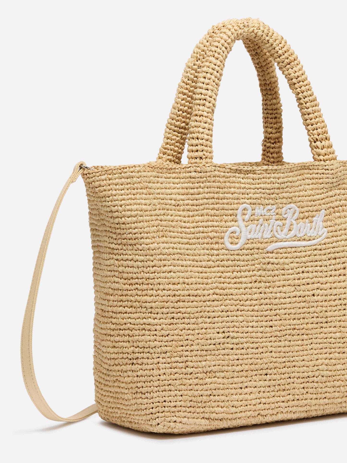 Beige Raffia Mid Strandtasche mit Baumwollbeutel