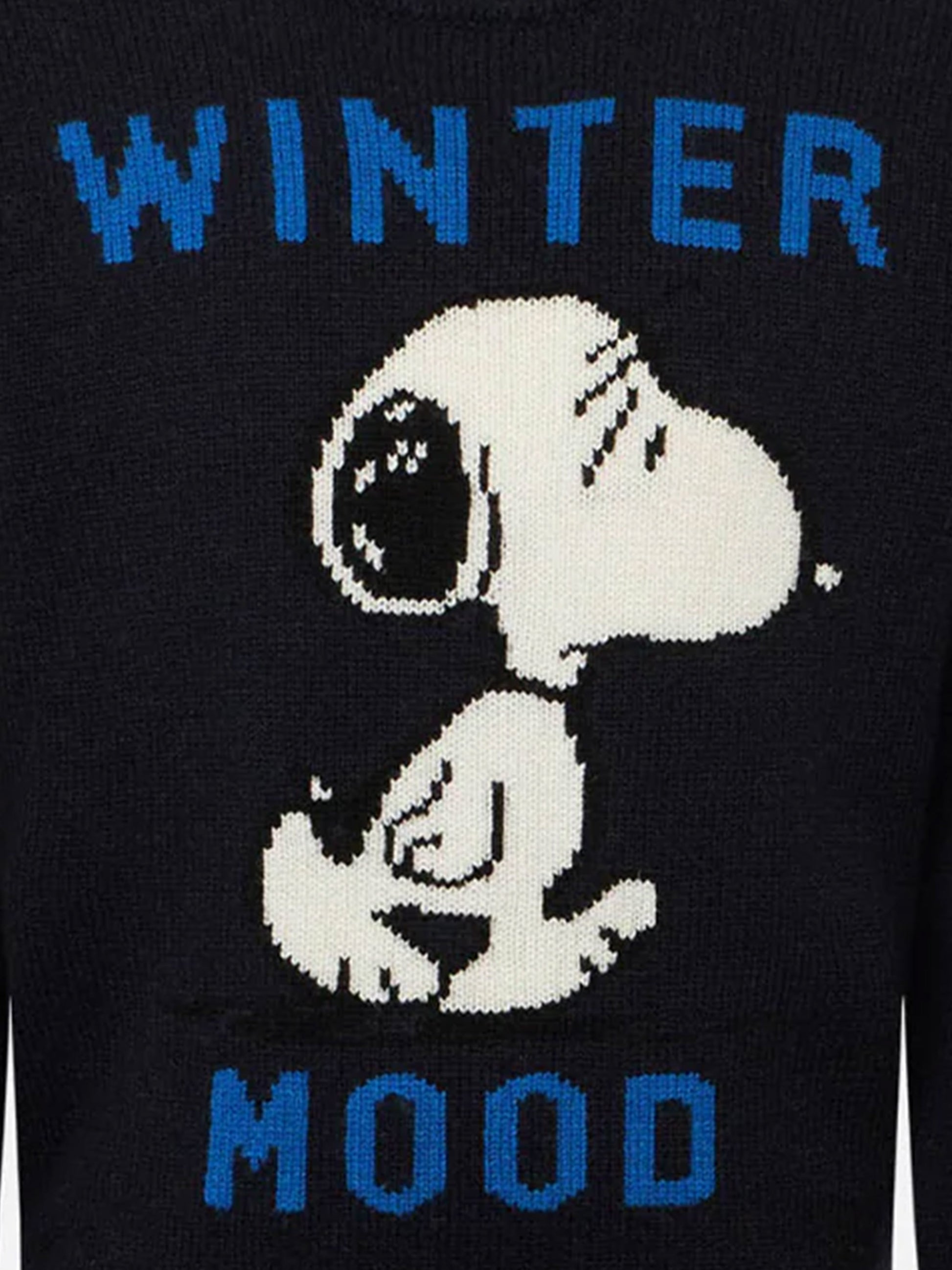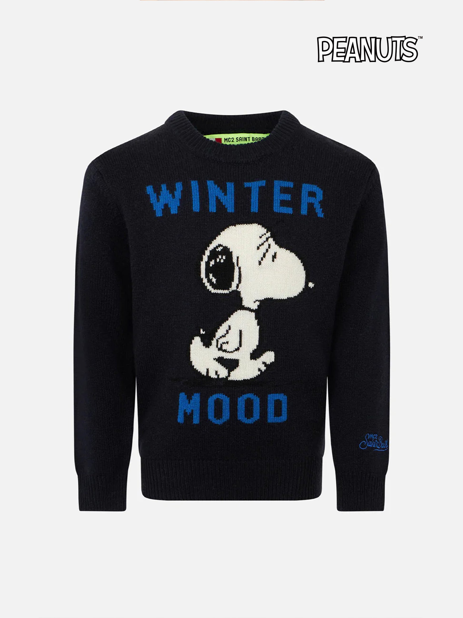 Blauer Marineblauer Snoopy Winter Mood-Pullover für Jungen – Sonderedition