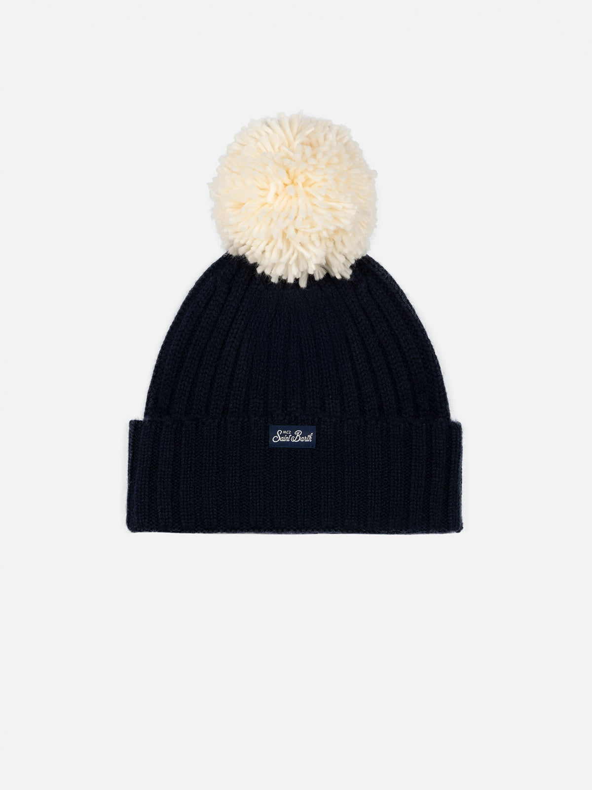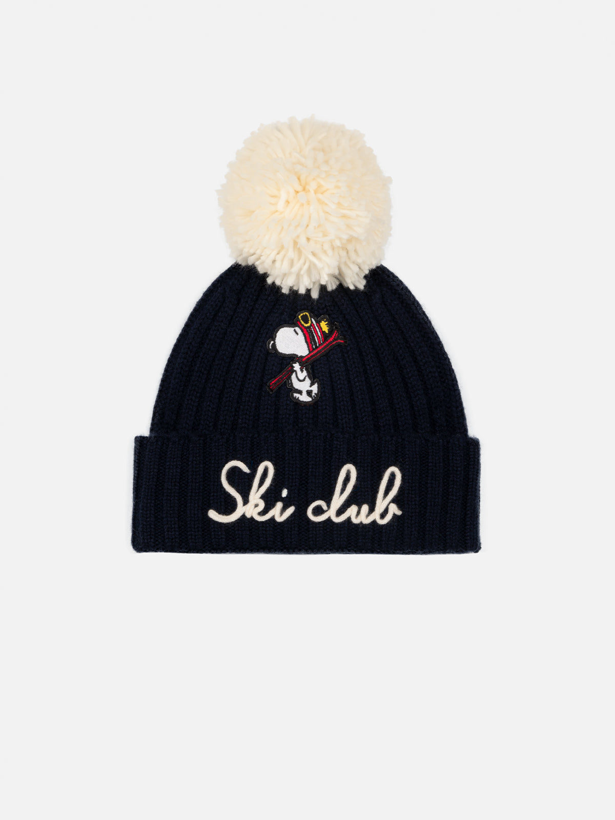 Blaue Wengenmütze für Jungen mit Pompon und Snoopy Ski Club Stickerei | SNOOPY PEANUTS SPECIAL EDITION