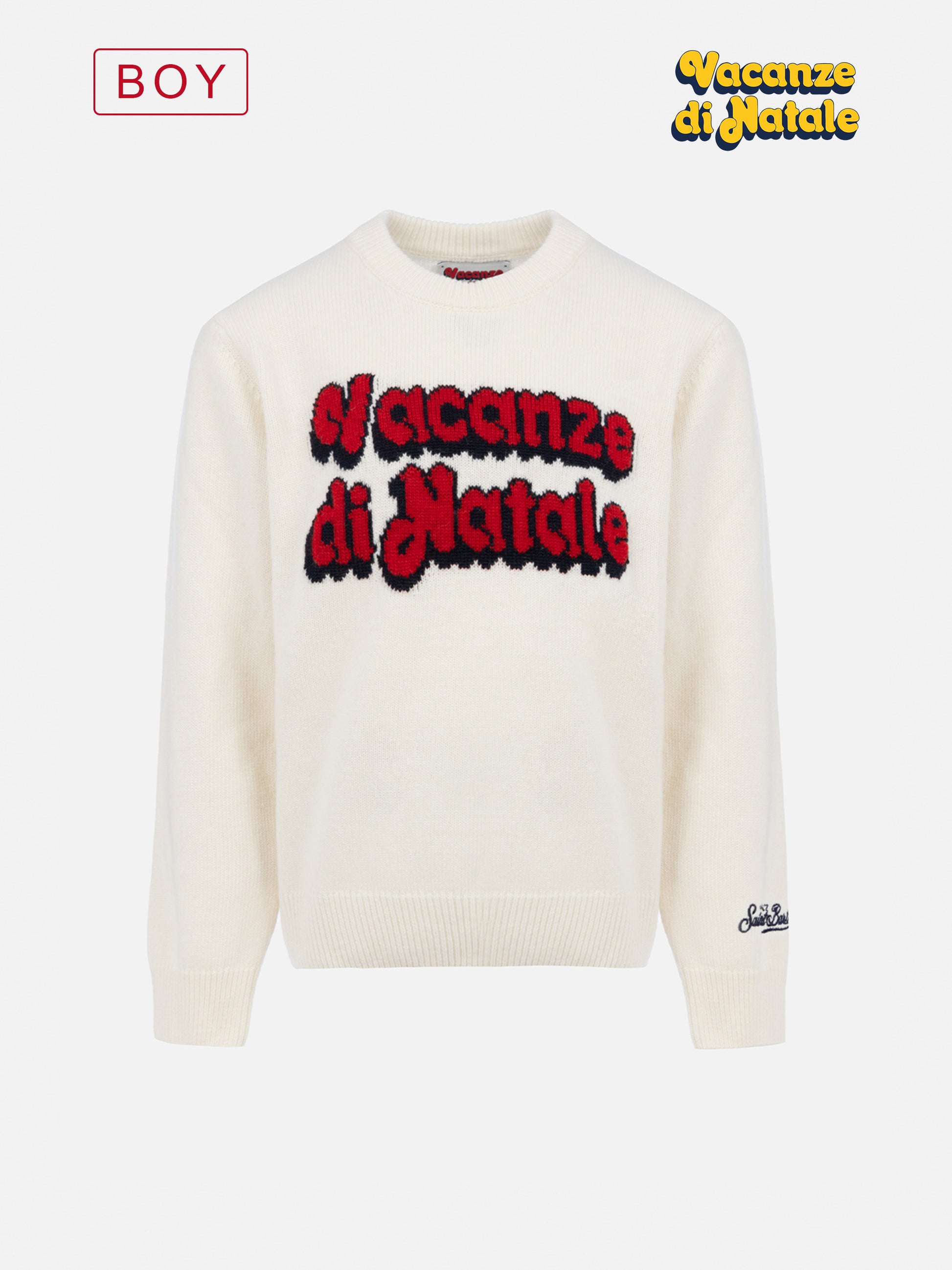 Weißer Jungenpullover Douglas mit Vacanze di Natale-Jacquard | VACANZE DI NATALE SONDERAUSGABE