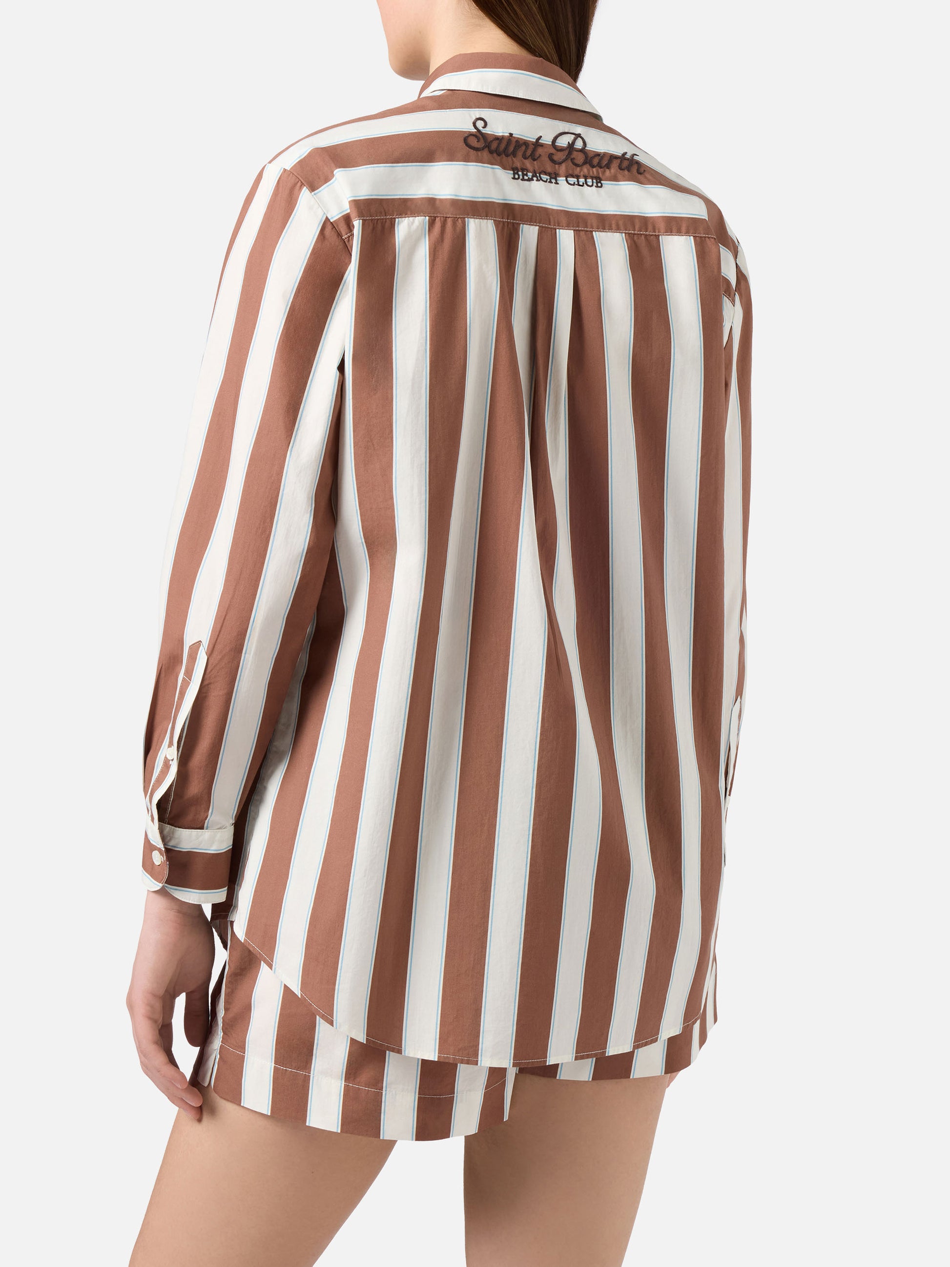 Brigitte cotton shirt with brown stripes and Sport Club embroidery
