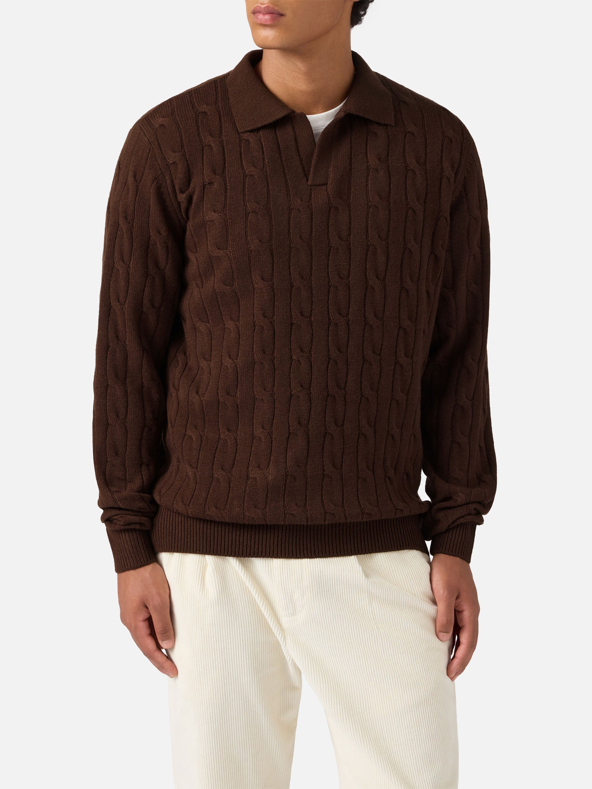 Brown wool knit polo Downing