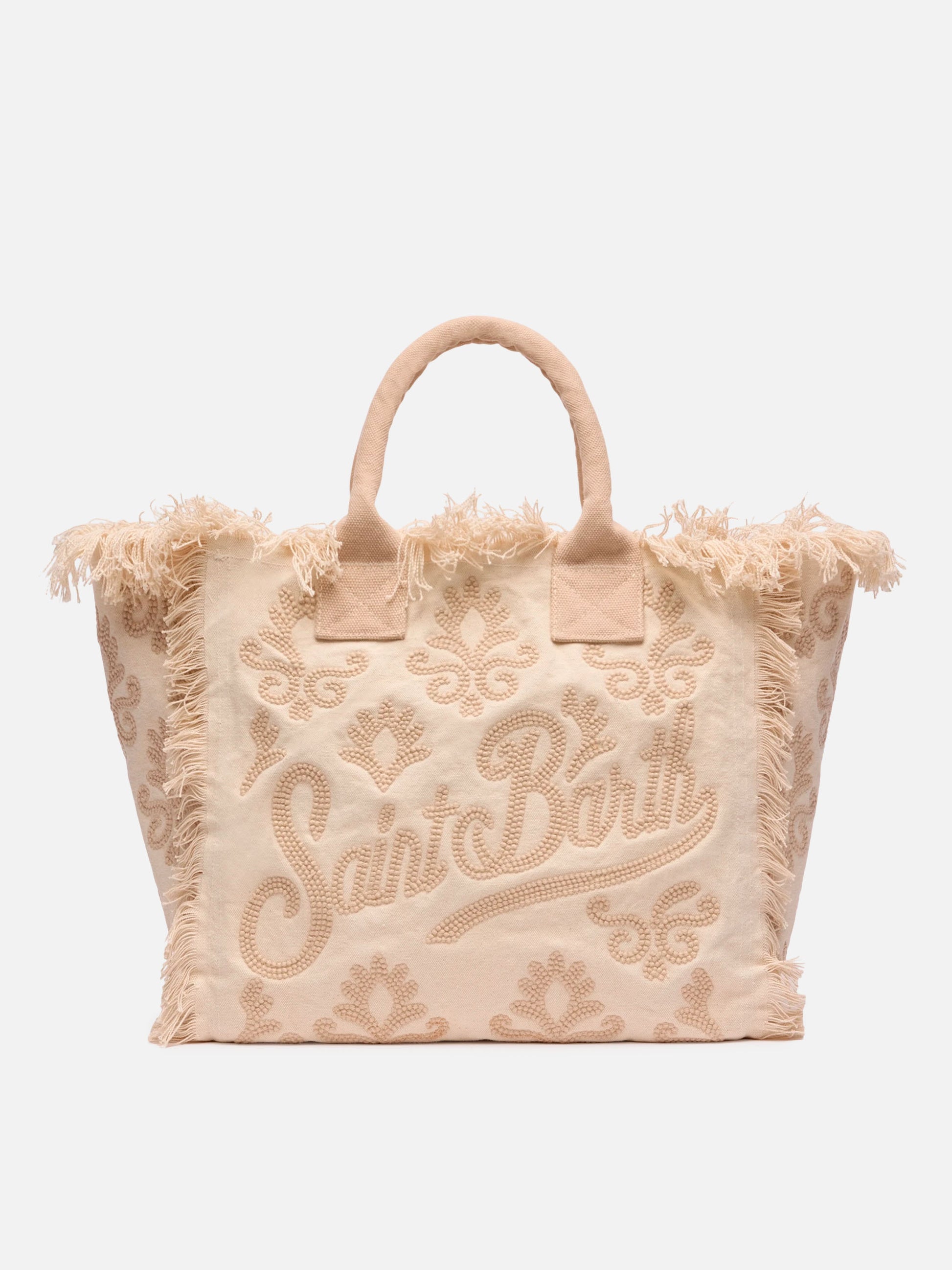Canvas Vanity regular bag with beige lily tufting embroidery