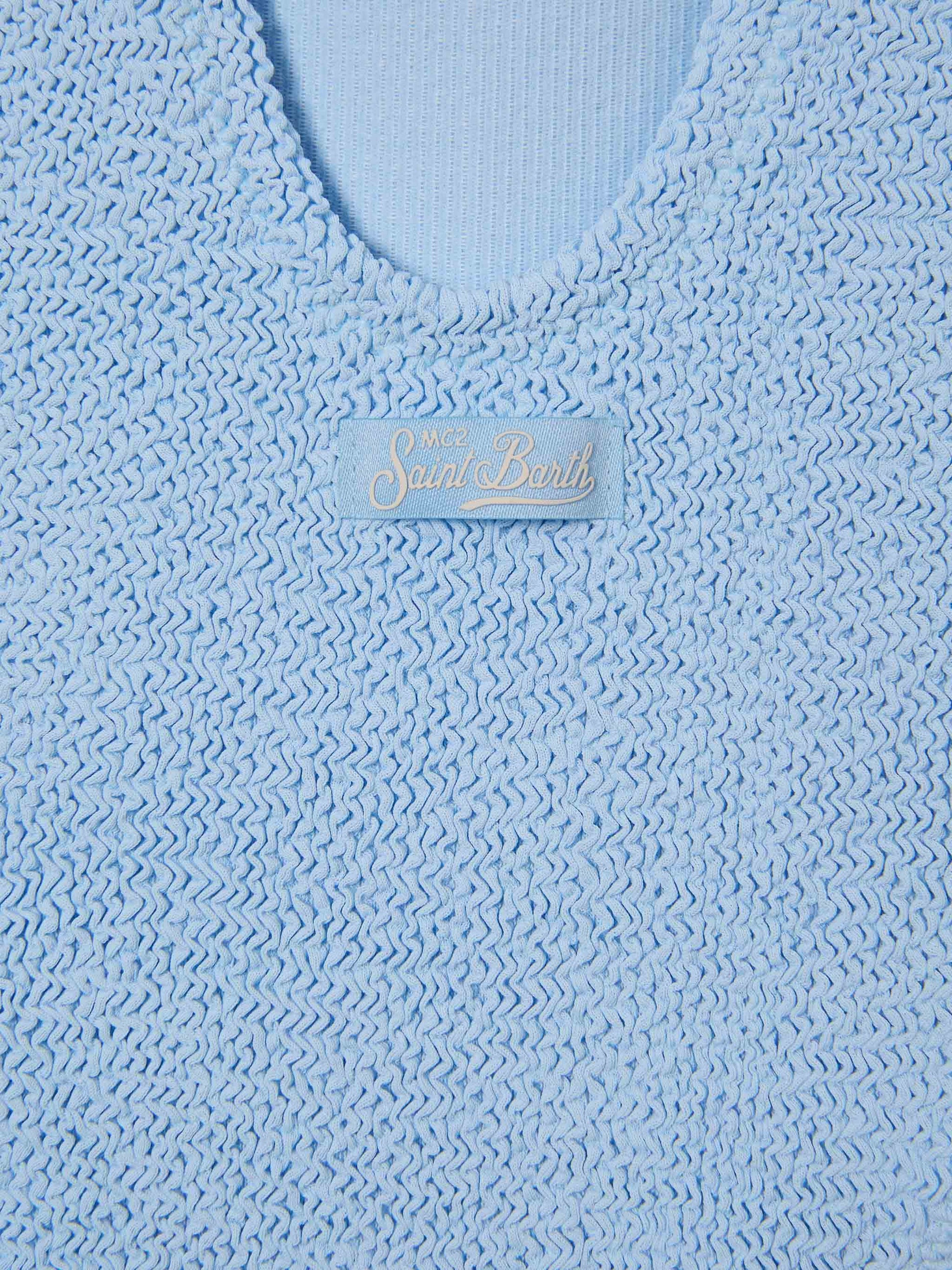 Cara crinkle one-piece swimsuit in solid light blue