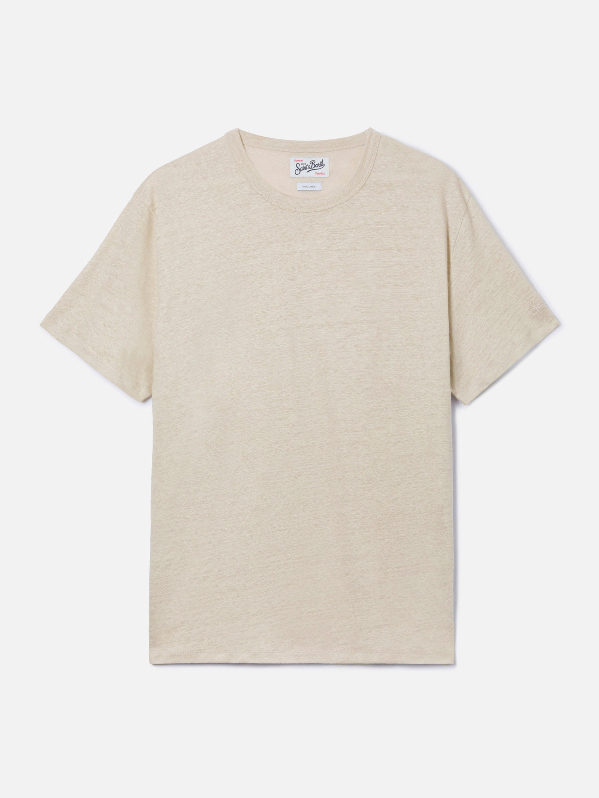 Cream Ecstasea pure linen t-shirt with logo embroidery