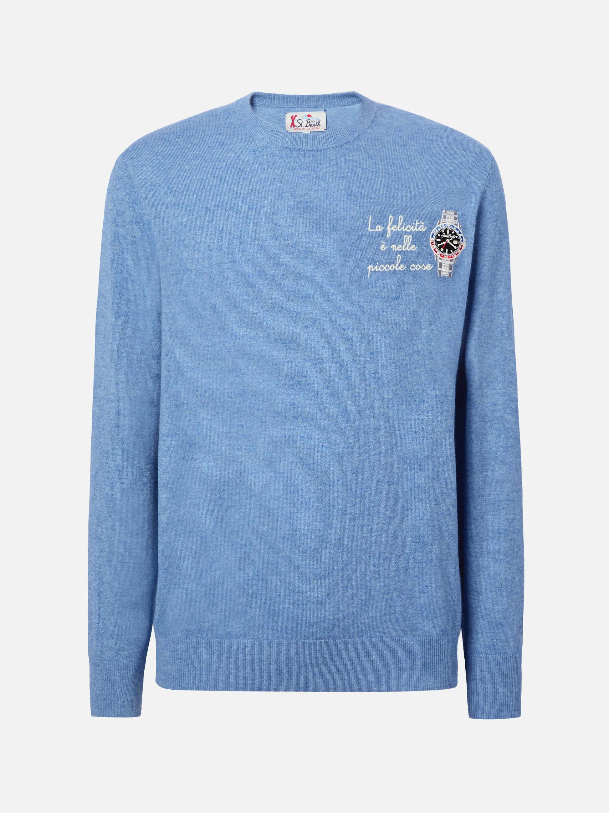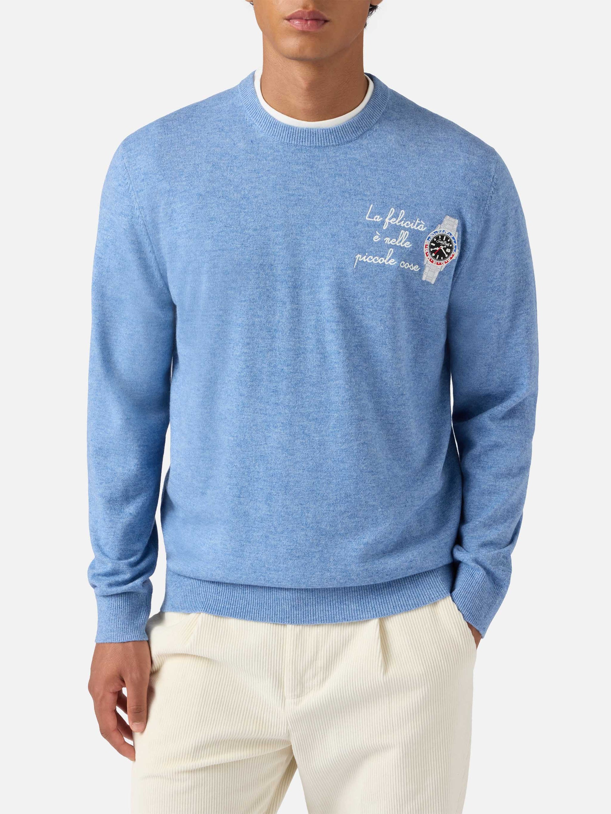 Crewneck sweater Heron Light with La felicità è nelle piccole cose embroidery