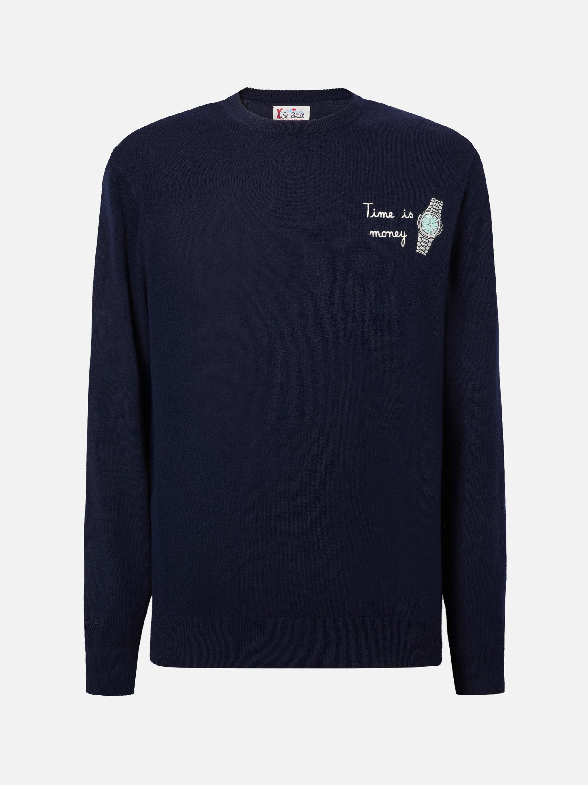 Crewneck sweater Heron Light with Time is Money clock embroidery