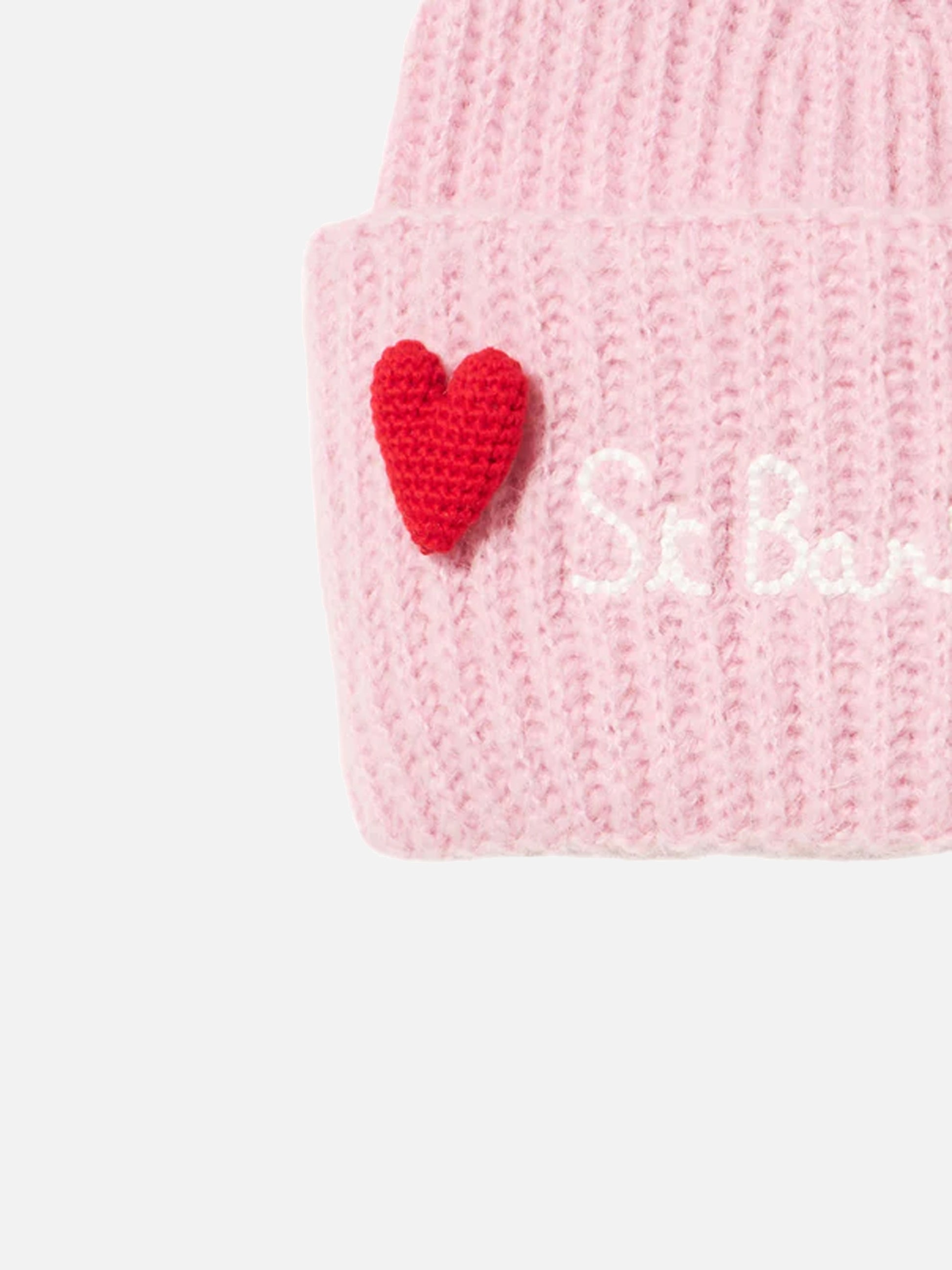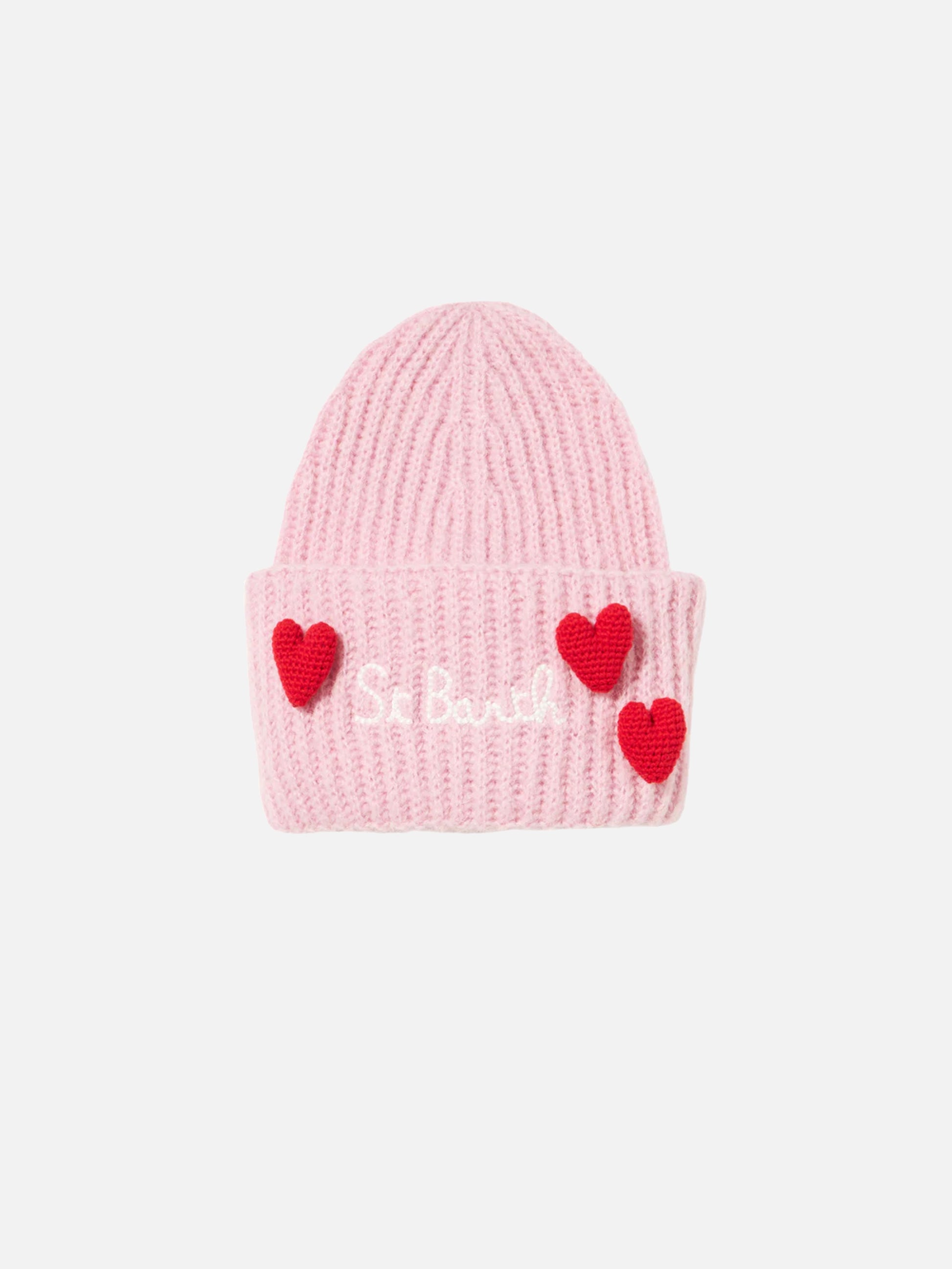 Gebürstete und ultraweiche Mädchenmütze mit Herzapplikationen