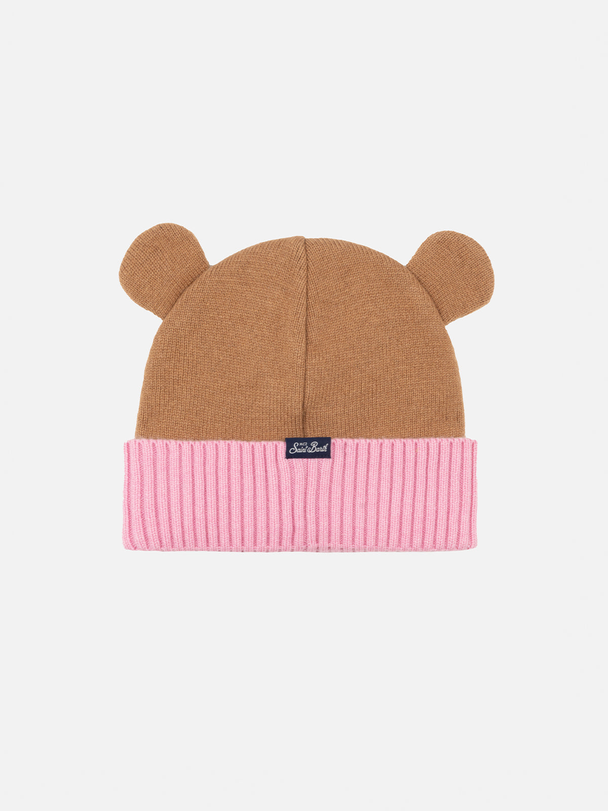 Rosa und braune Mütze „Zaya“ für Mädchen in Bärenform