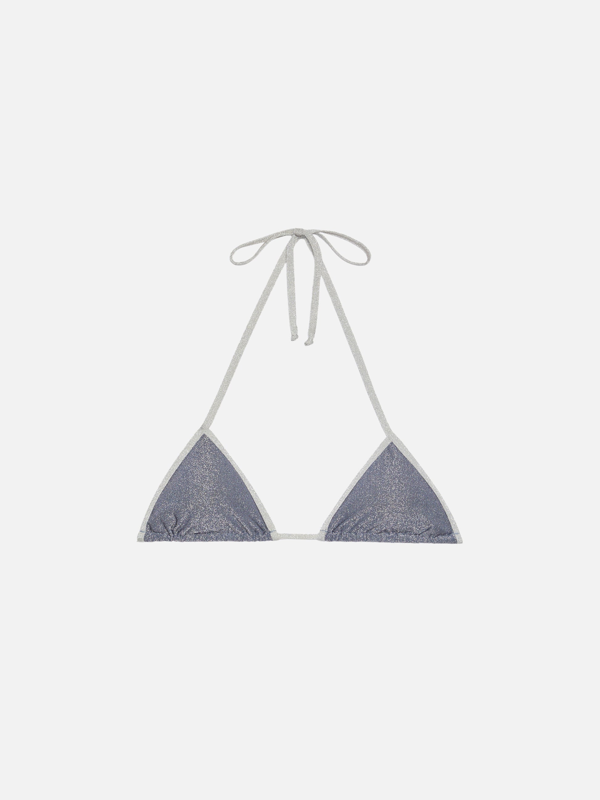 Leah – avioblaues Lurex-Triangel-Top mit silberner Paspelierung