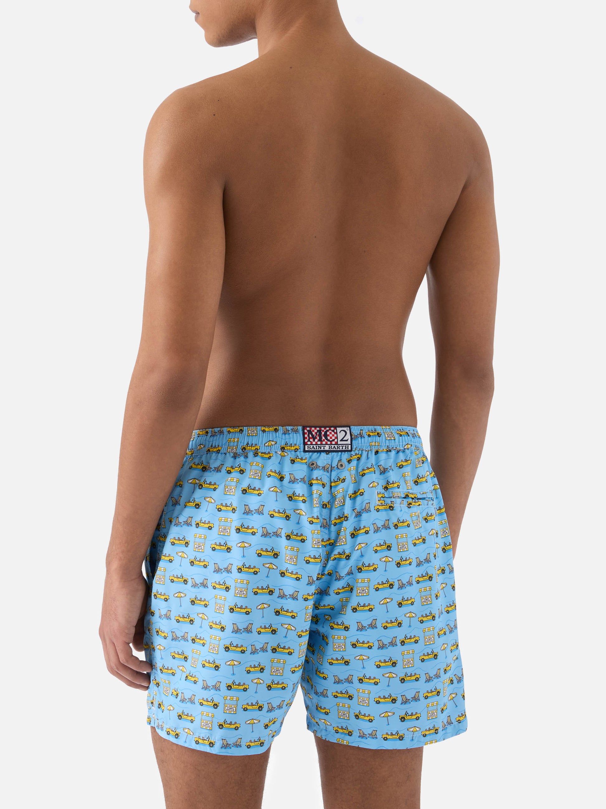 Light blue Lighting Micro swim shorts with road to Formentera all-over print