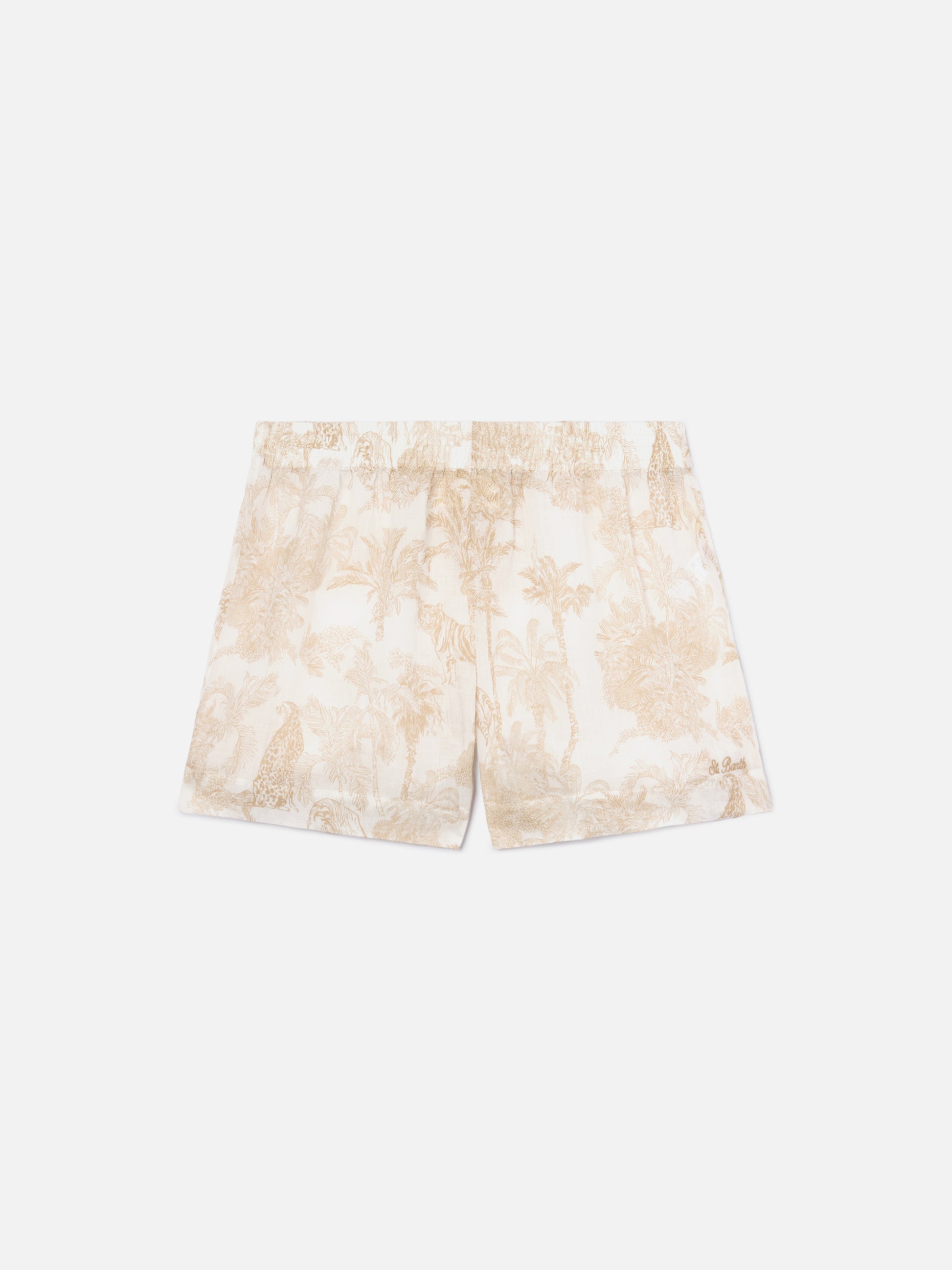 Meave ramie shorts with beige toile de Jouy print