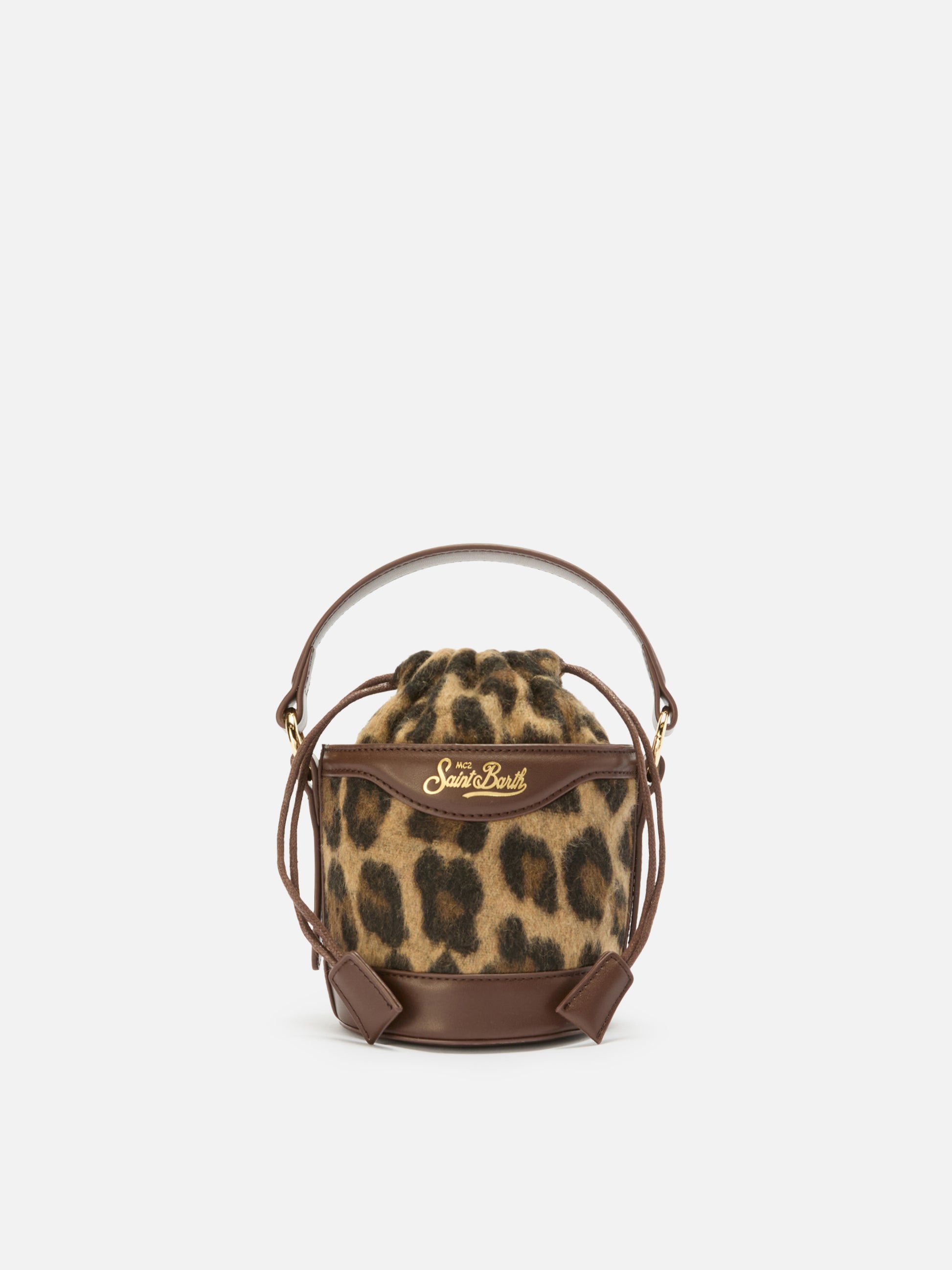 Mila Tweed Bucket Bag in leopard-print wool blend tweed