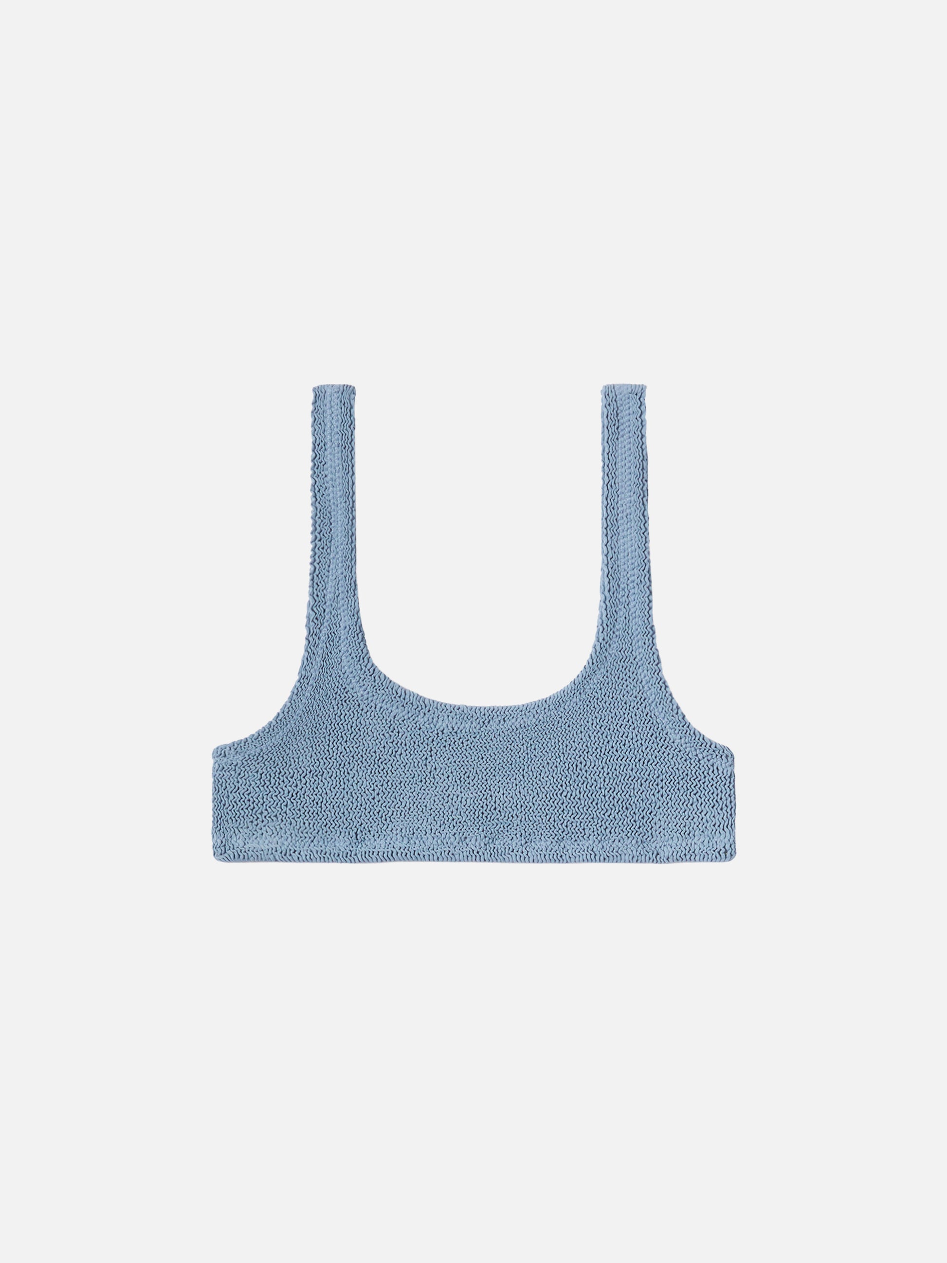 Naima – Klassisches Bralette-Oberteil in Crinkle-Optik in Avioblau