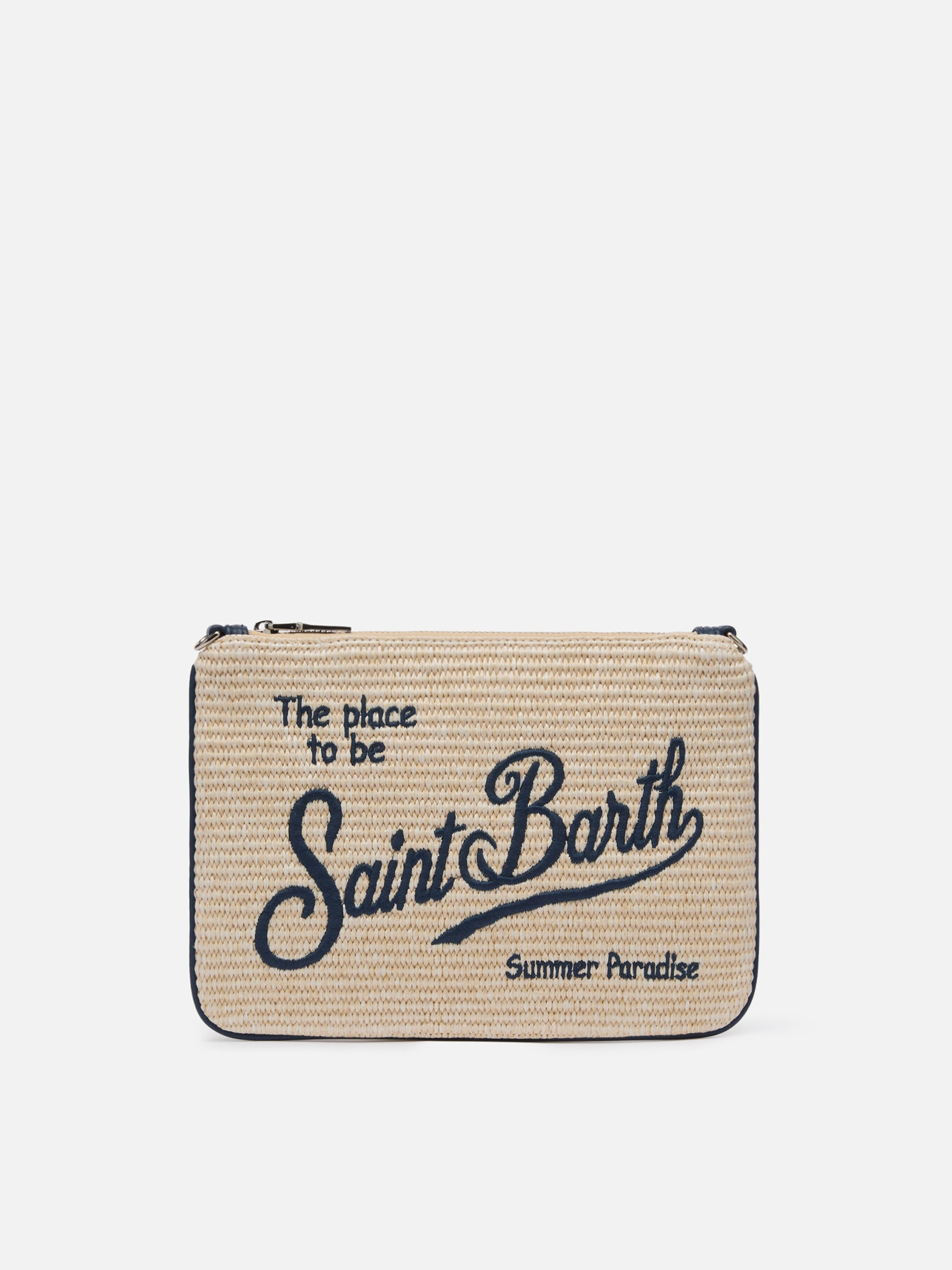 Parisienne – Beuteltasche in Strohoptik mit aufgesticktem Logo