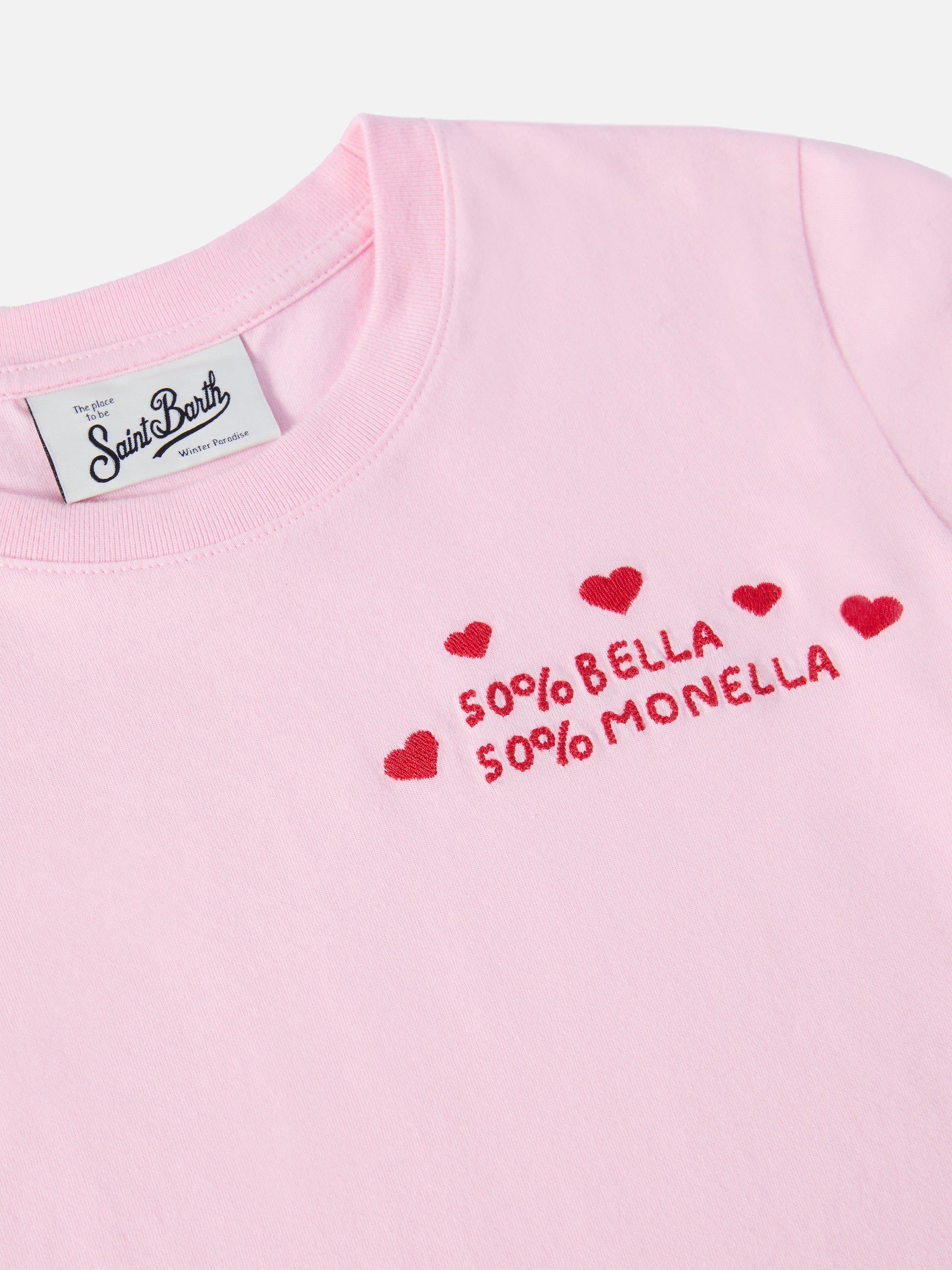Penny Langarm-T-Shirt aus Baumwolle in Rosa mit Bella e Monella-Stickerei