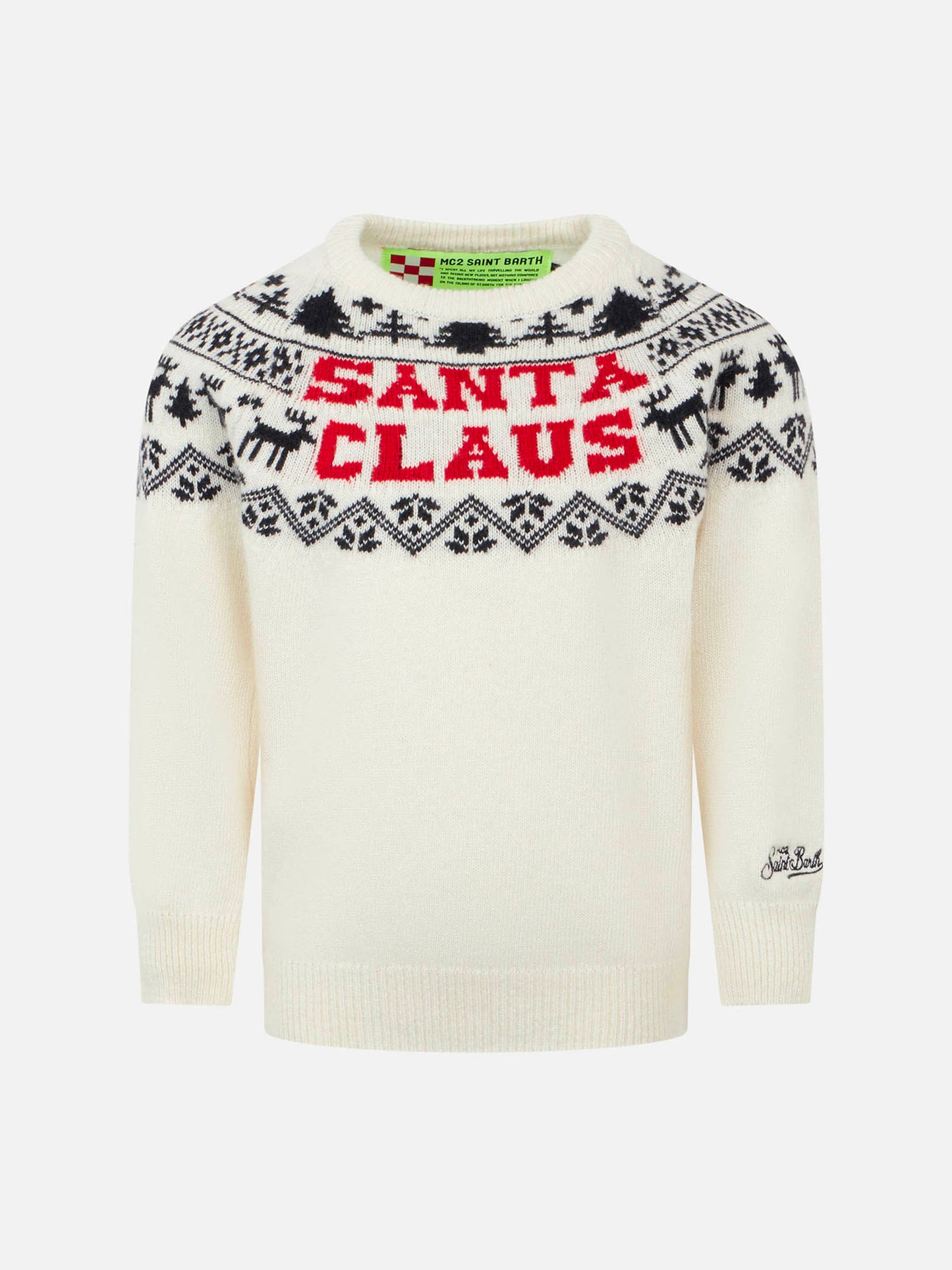 Kinderpullover mit Rundhalsausschnitt und norwegischem Weihnachtsmann-Aufdruck