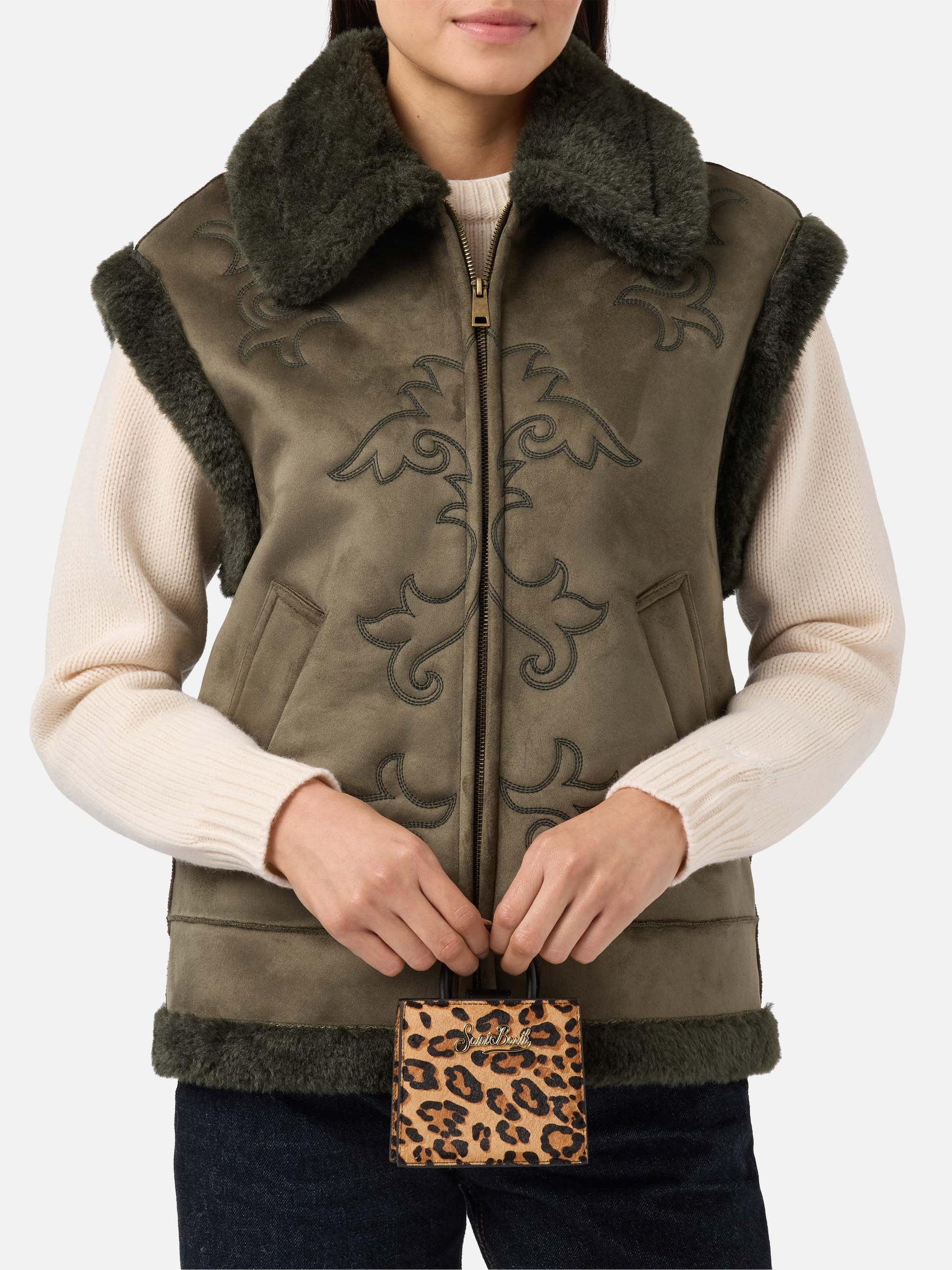 Adrien double-face herringbone bomber with rhinestones