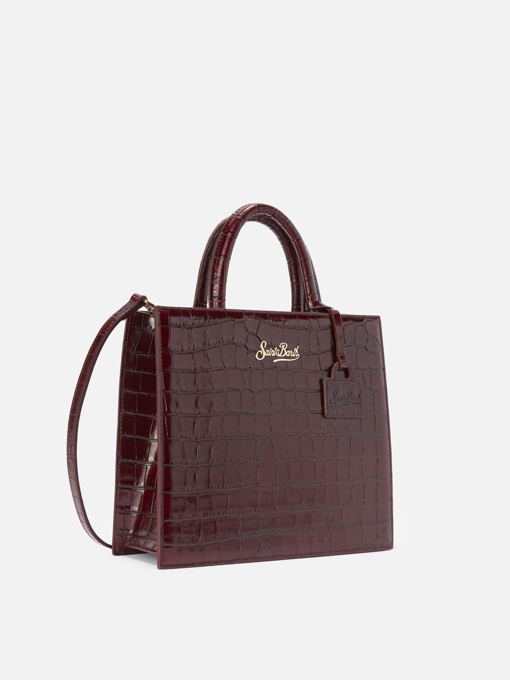 Shop Bag Midi Handbag in burgundy crocodile-print leather
