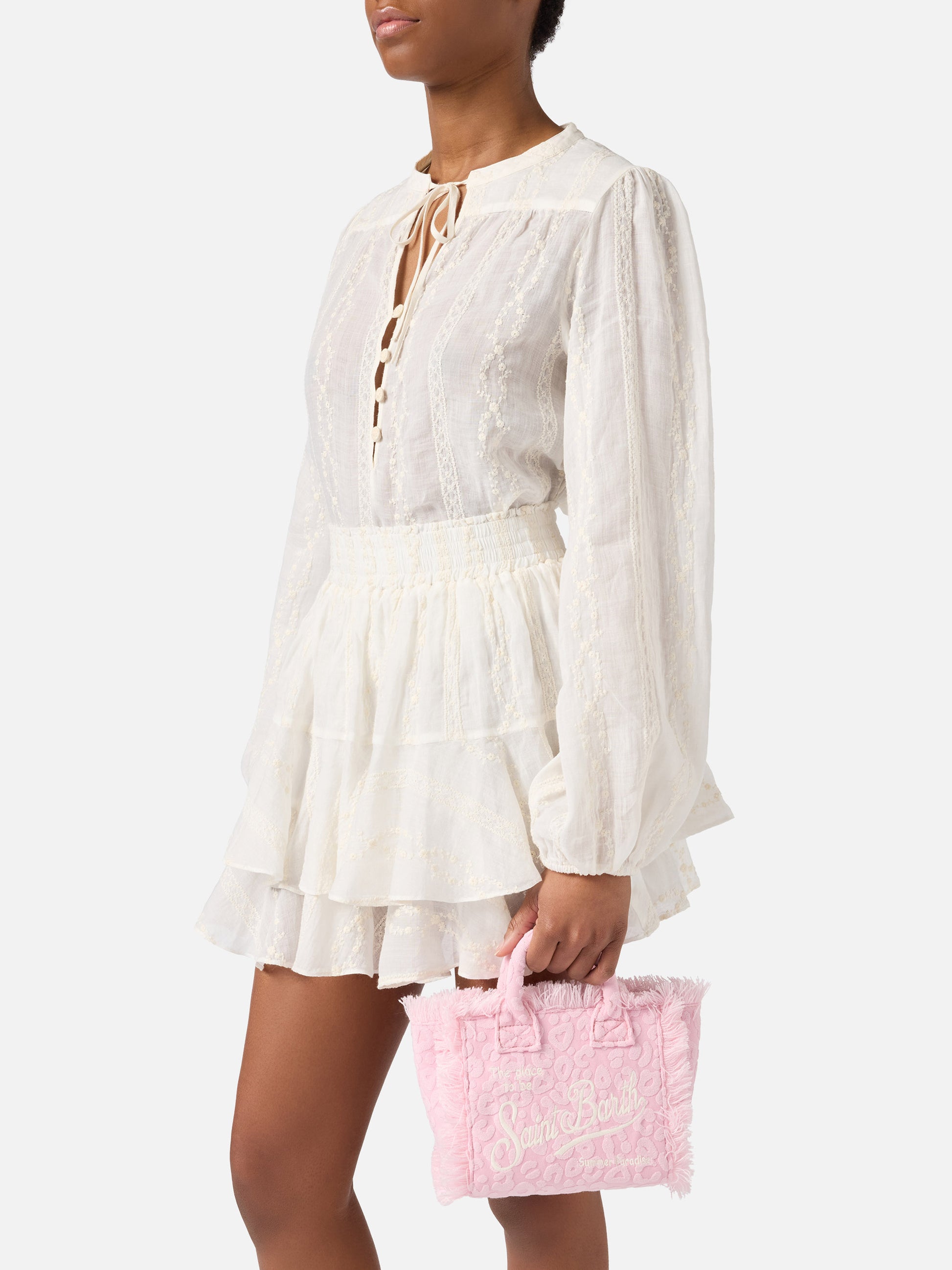 Do not dry clean MC2 Saint BarthCategory_BAGColor_PINKFabric_TEX0001Folder_STBGender_ACCESSORYModel_VAMI003ON|comingsoonPattern_00527LSeason_23Esize-MINIType_SIMPLEUID_VAMI00300527Ladd-to-carthttps:files/UID_VAMI00300527L-ACCESSORY-BAG-PINK-MC2-MC2_2.jpghttps:files/UID_VAMI00300527L-ACCESSORY-BAG-PINK-MC2-MC2_3_cf6e3f1a-0f87-43fb-bb30-a0d33a2ed847.jpghttps:files/UID_VAMI00300527L-ACCESSORY-BAG-PINK-MC2-MC2_4_f58f721a-e8f8-427a-a8b3-77c78362b422.jpghttps:files/UID_VAMI00300527L-ACCESSORY-BAG-PINK-MC2-MC2_5_2d162884-b321-49a6-833a-c48bc8f3abe6.jpg53610422042970ONE SIZE169.00https:https://it.mc2saintbarth.com/de/products/terry-effect-vanity-mini-bag-with-raised-leopard-pattern?variant=53610422042970OutOfStockONE SIZE