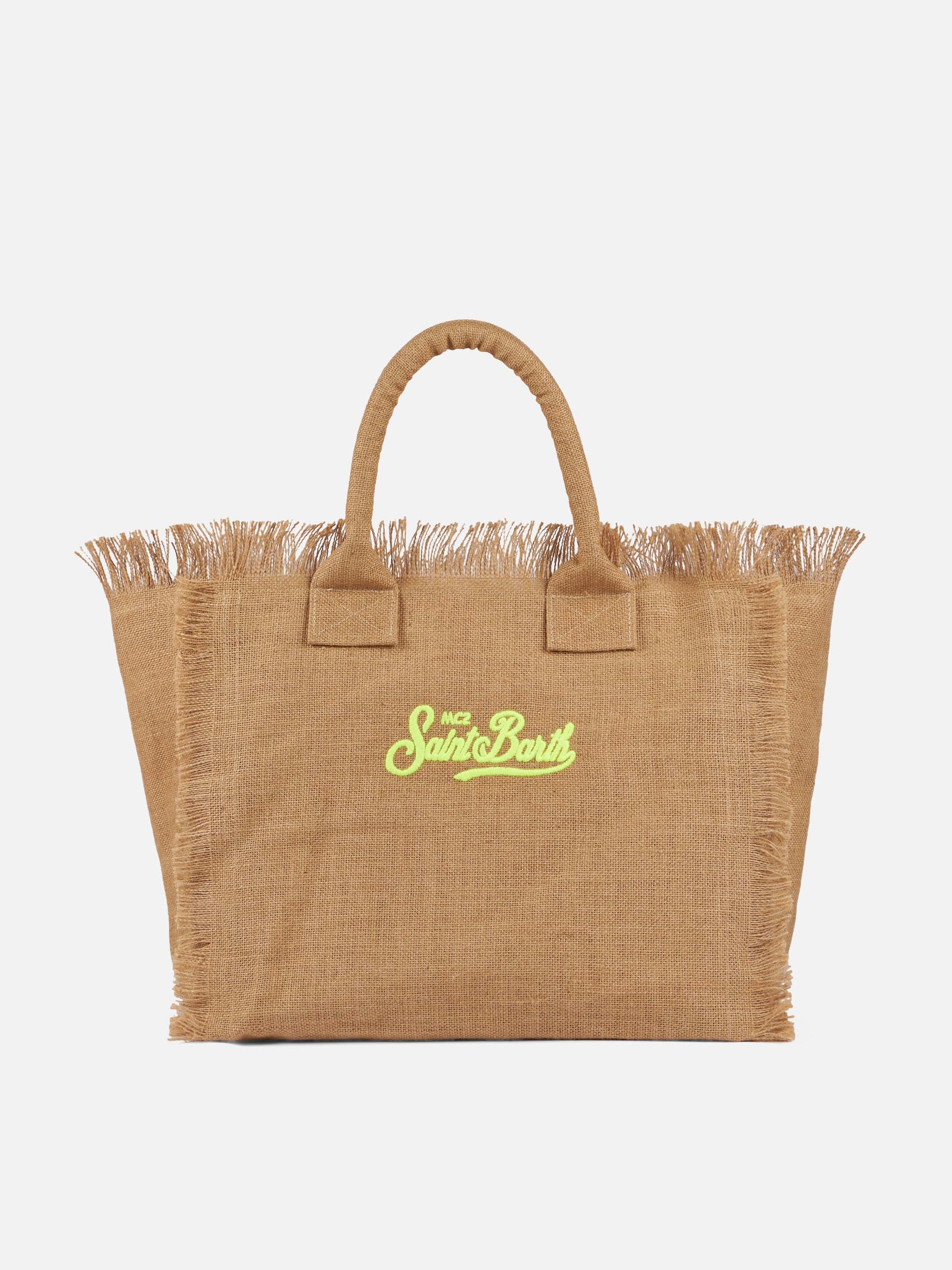 Vanity Umhängetasche aus Naturjute mit gesticktem Logo