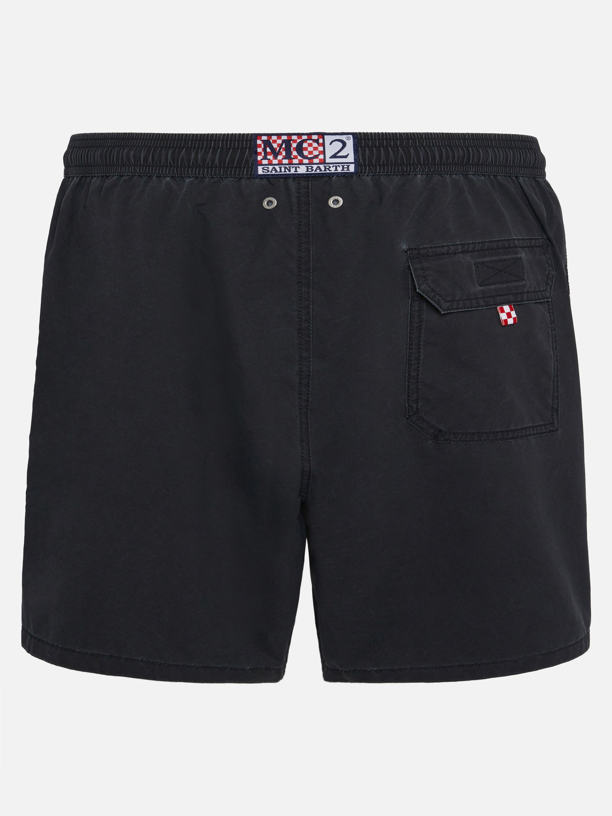 Wir präsentieren unsere Patmos-Badeshorts aus strukturiertem Polyestergewebe mit baumwollähnlichem Griff. Veredelt mit Kontrastnähten und Kordelzug sowie dem aufgestickten exklusiven Saint Barth-Logodetail am unteren Bein. Verfügt über eine Gesäßtasche mit Klappe und Klettverschluss. Diese Version ist aus schnelltrocknendem Stoff gefertigt. Die Schönheit dieses Kleidungsstücks liegt in der einzigartigen Stoffverarbeitungstechnik, die mit einer ersten Stoffbeschichtung beginnt, gefolgt von einer sanften Waschbehandlung nach der Herstellung des Kleidungsstücks. Dieser Prozess erzeugt einen einzigartigen Vintage-Effekt, insbesondere bei den Nähten. Jede Unvollkommenheit wird als Merkmal betrachtet, was jedes Stück wirklich einzigartig macht. Mittellange Badeshorts Man Patmos Vintage schwarze Farbe Strukturierte Baumwollhaptik Exklusives Saint Barth-Logodetail am unteren Beinabschluss Bequemer Gummibund Verstellbarer Kordelzug mit Markenanschlüssen Antibakterielles Netz-Innenfutter Seitentaschen mit französischen Nähten Aufgesetzte Gesäßtasche mit Klettverschluss Markenösen zum Ableiten von Wasser und zur Vermeidung eines Balloneffekts Exklusives MC2 Saint Barth-Etikett auf der Rückseite Klassische Passform Zusammensetzung: 100% Polyester Größe L hat eine halbe Bundweite von 52,5 cm (gedehnt) und variiert bei jeder Größe um 2 cm