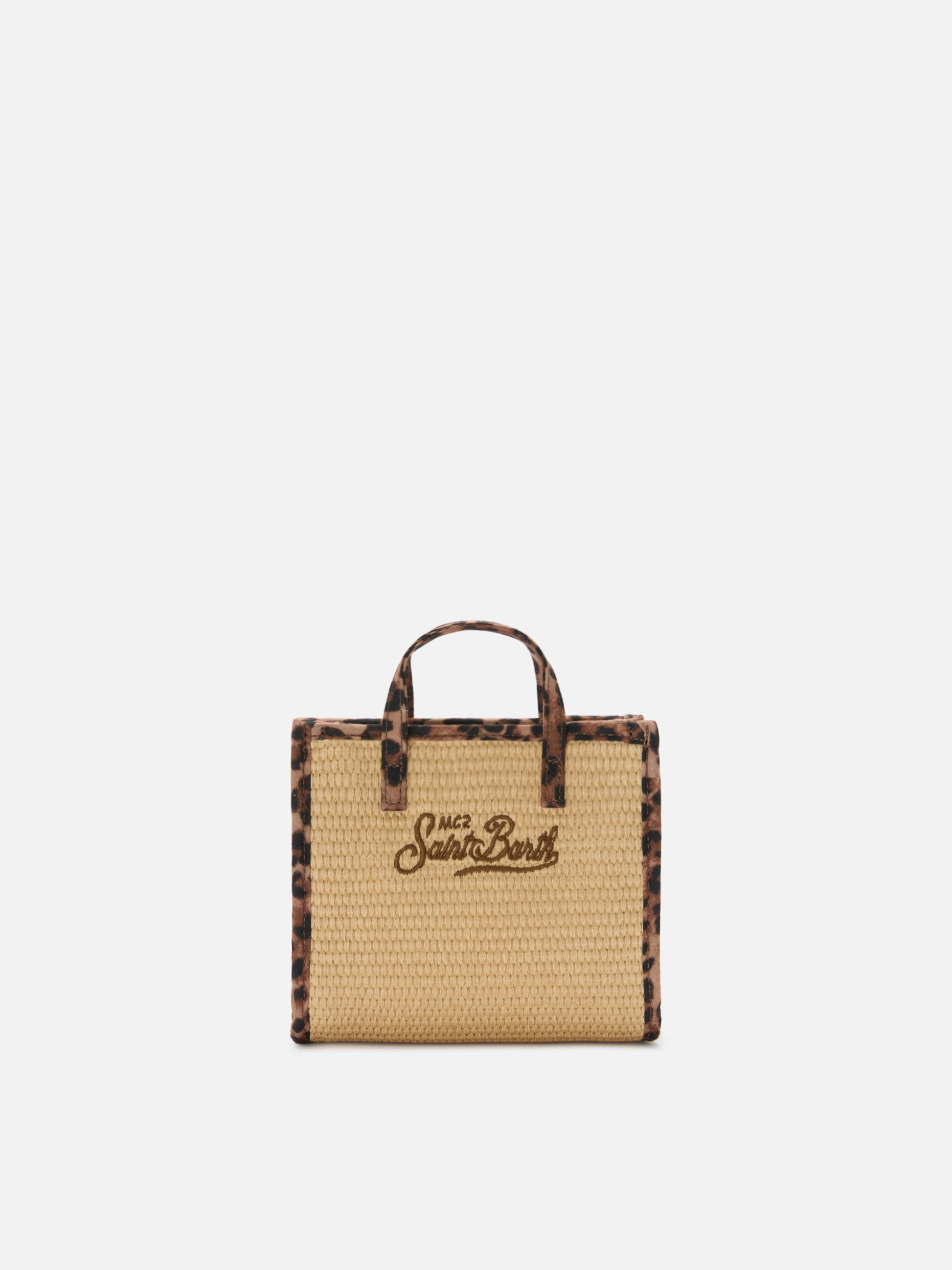 Vivian mini straw effect bag with leopard trims