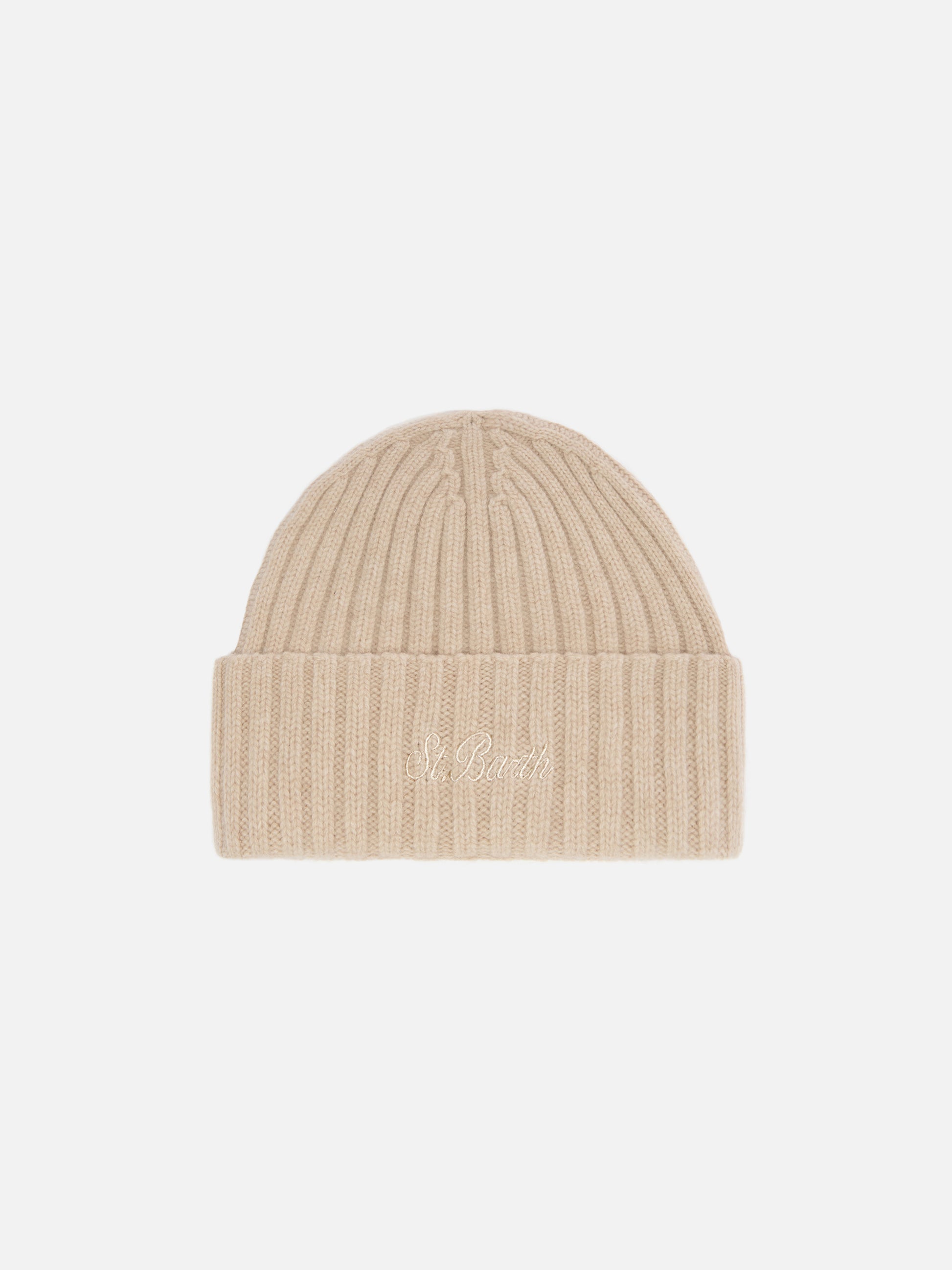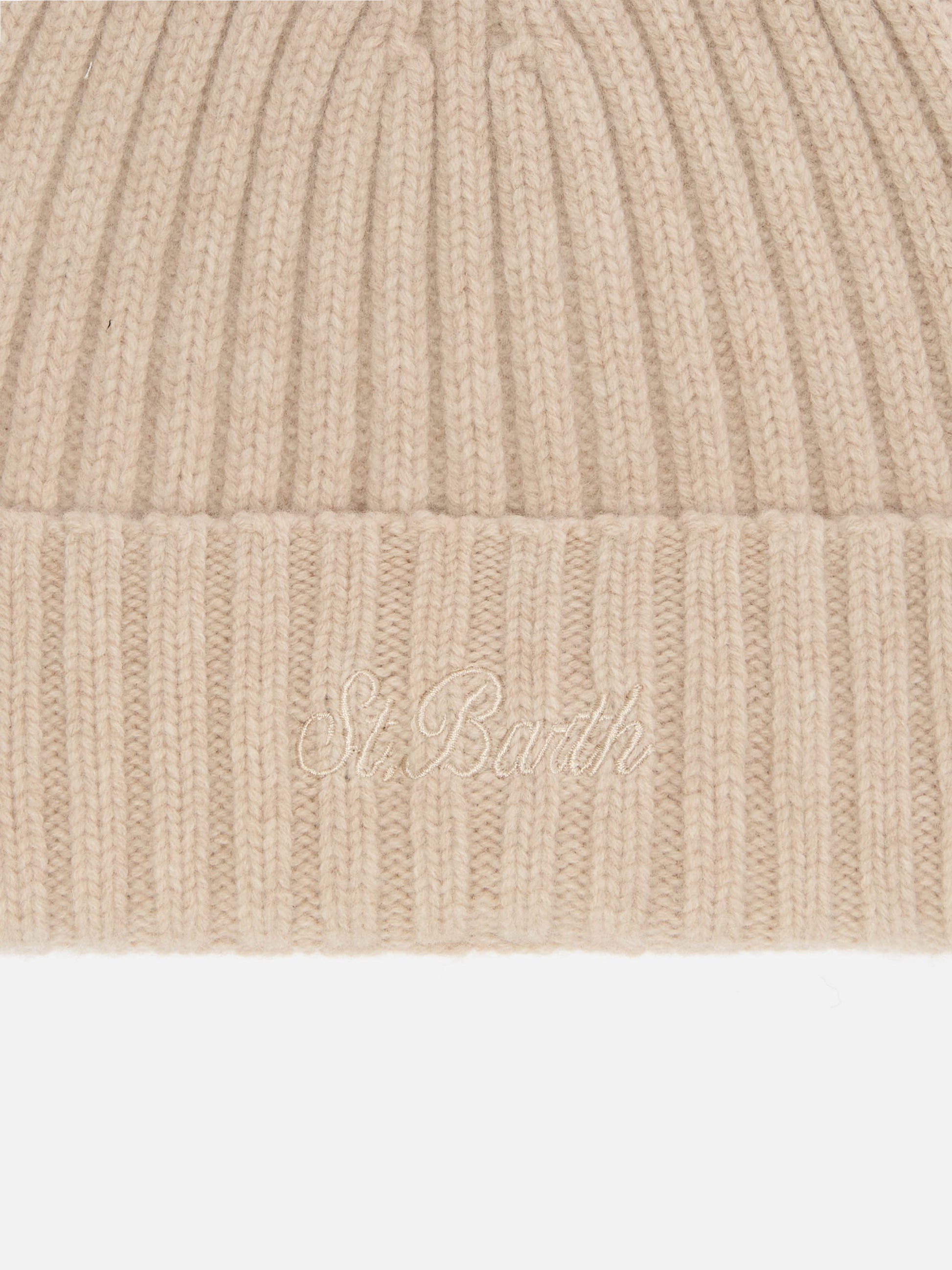 Wengen beanie in beige wool with St. Barth embroidery on the turn-up