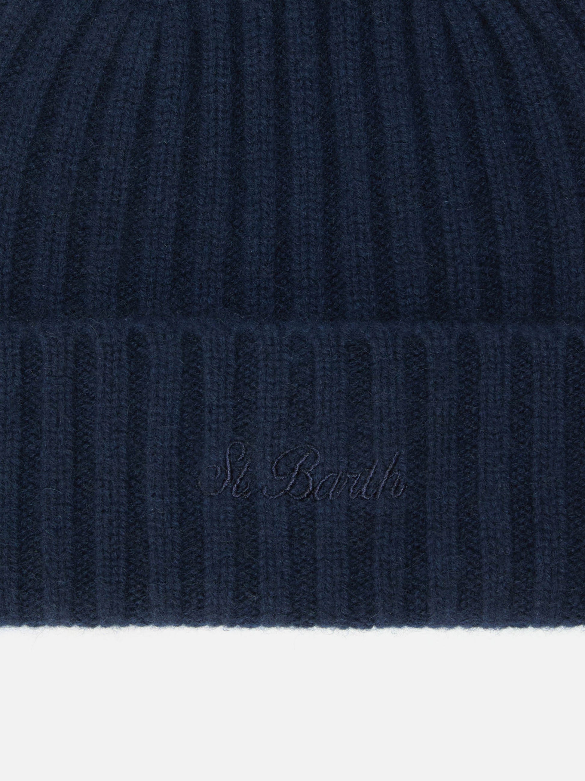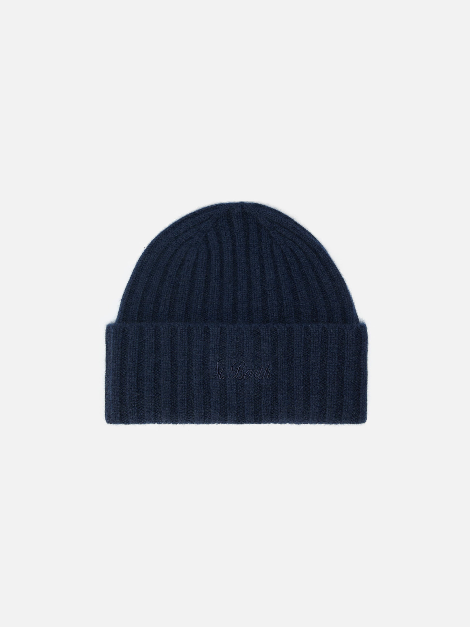 Wengen beanie in cashmere navy blue with St. Barth embroidery on the turn-up