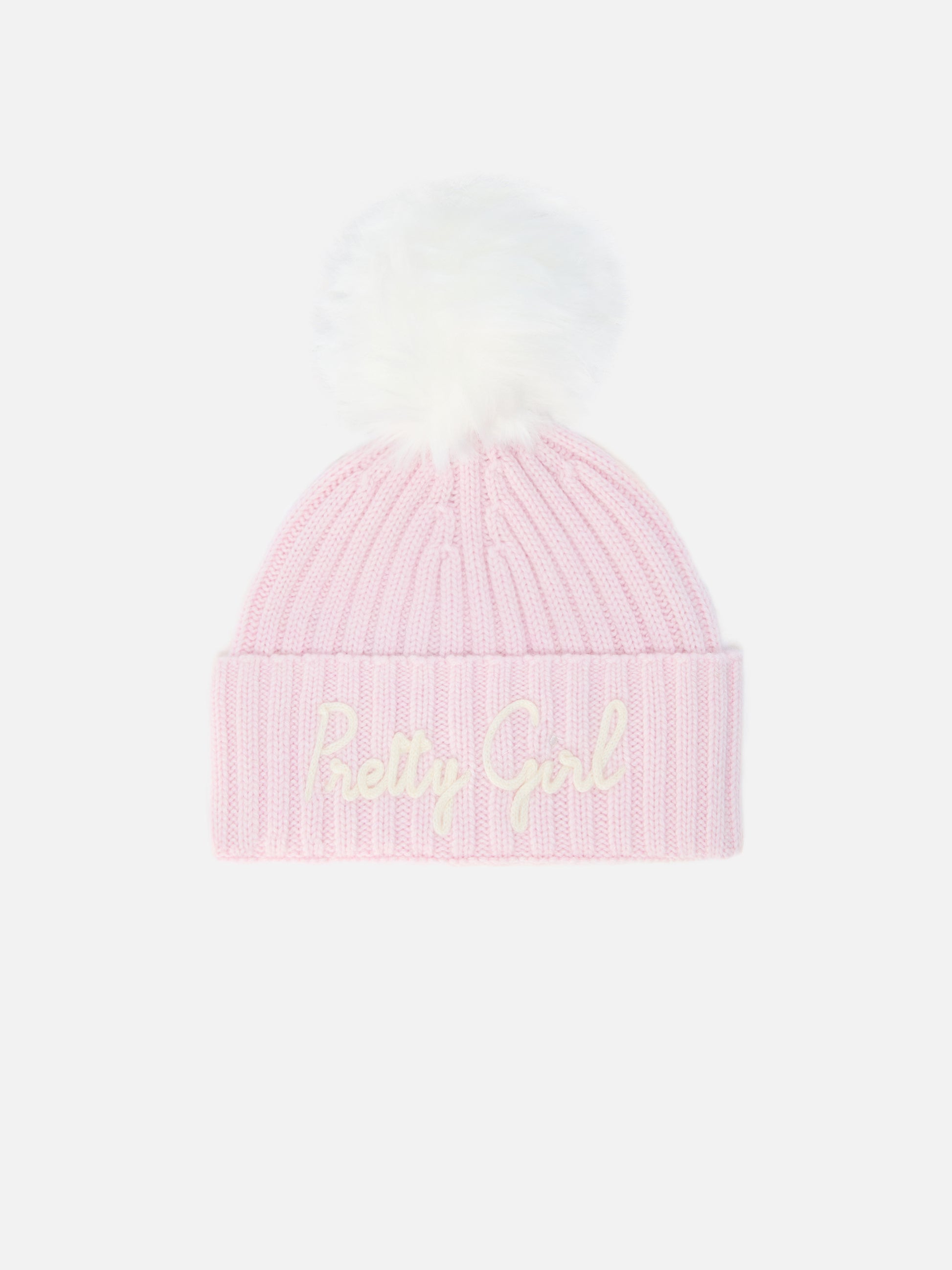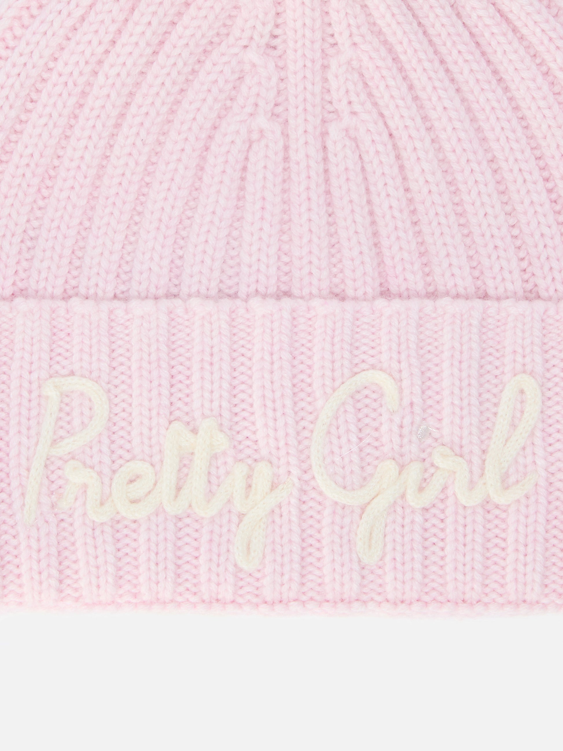 Wengen Jr F Mütze aus Kaschmirmischung in Rosa mit Pretty Girl Stickerei