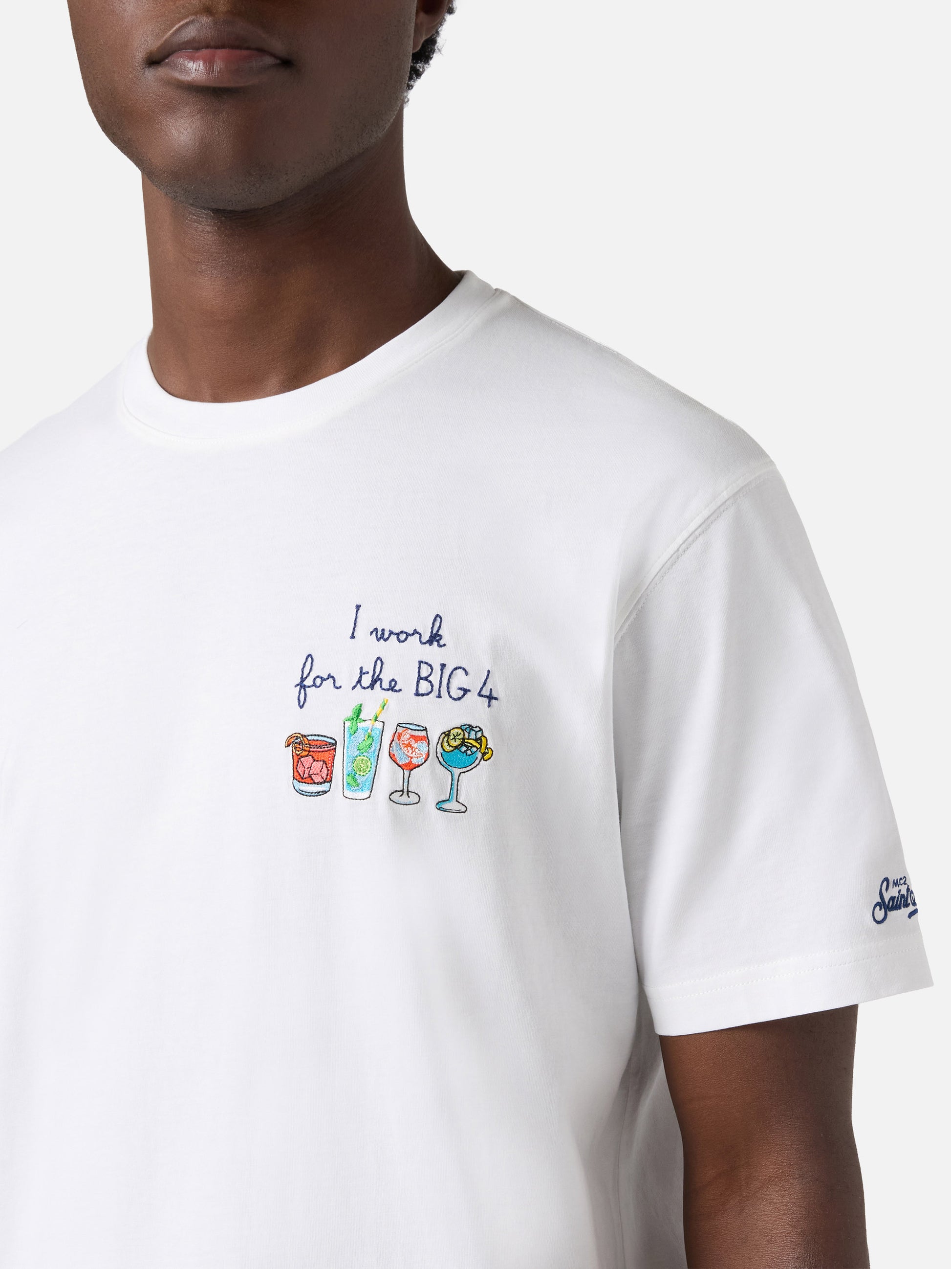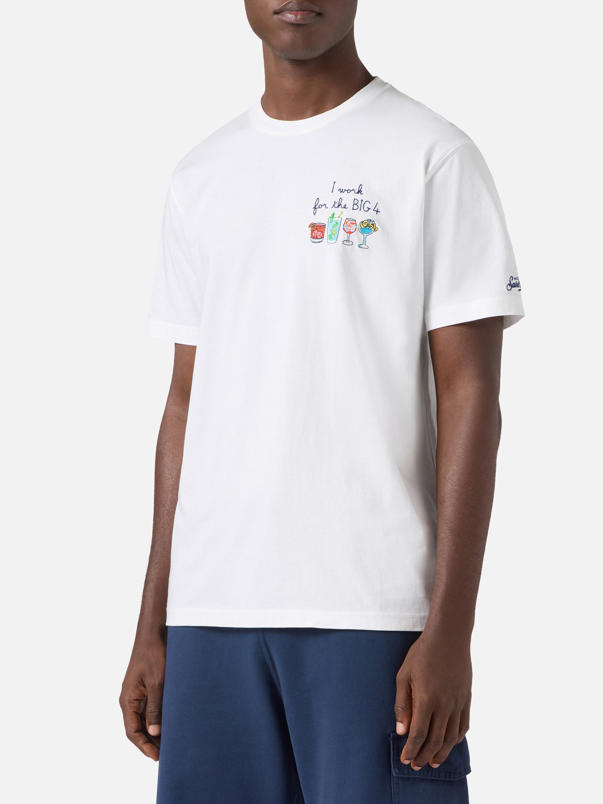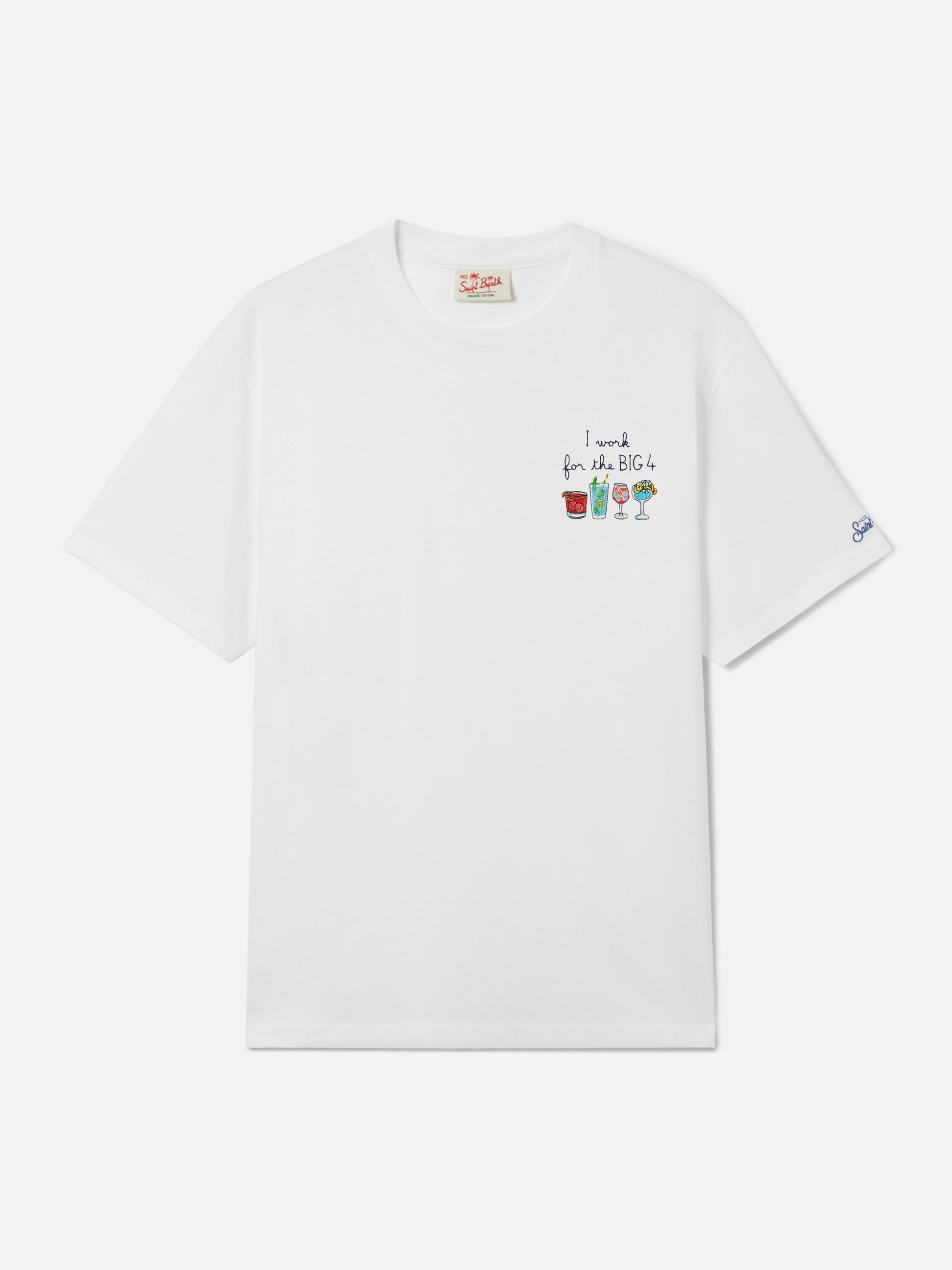 White Portofino T-shirt with I Work For The Big 4 embroidery