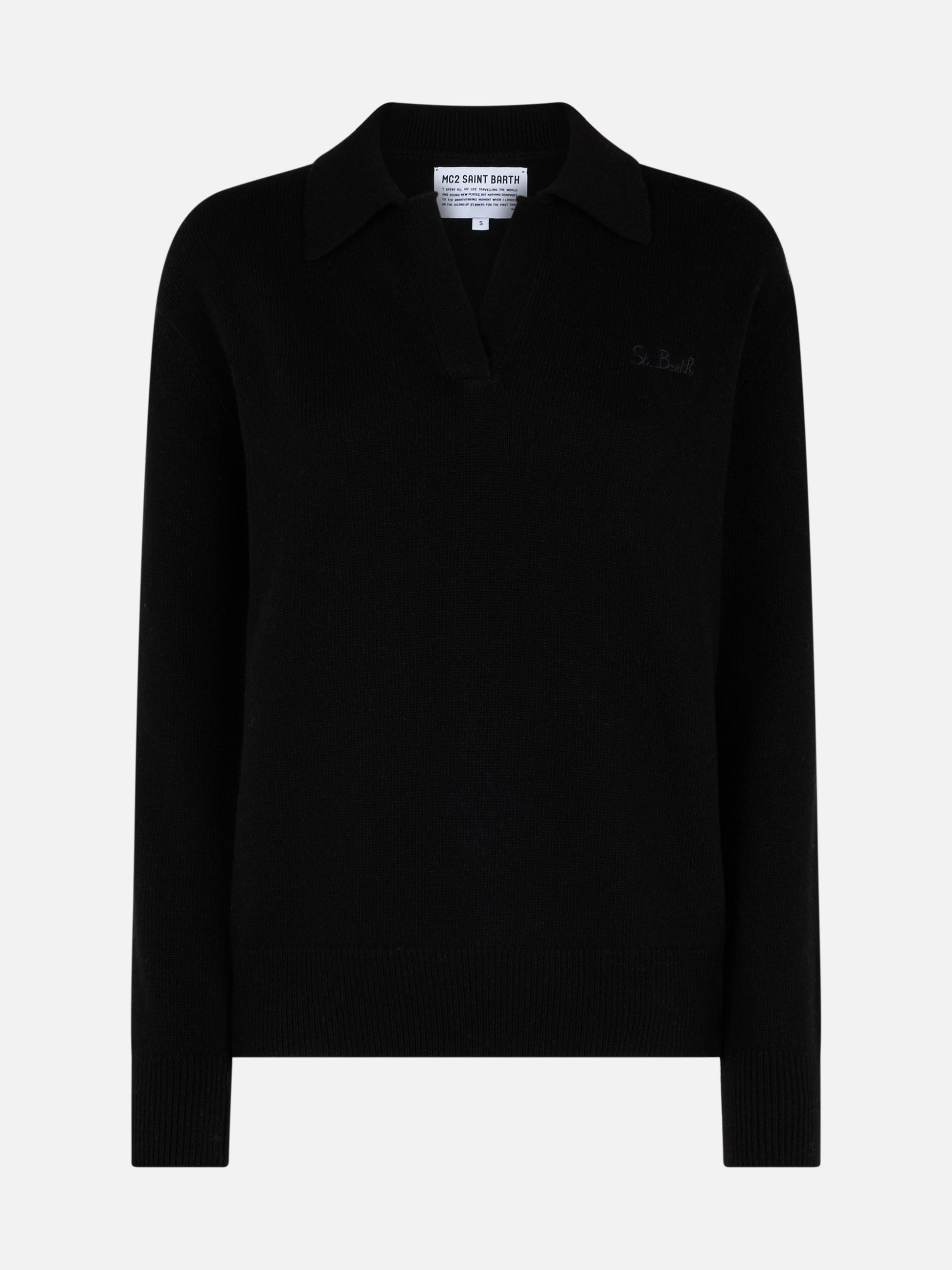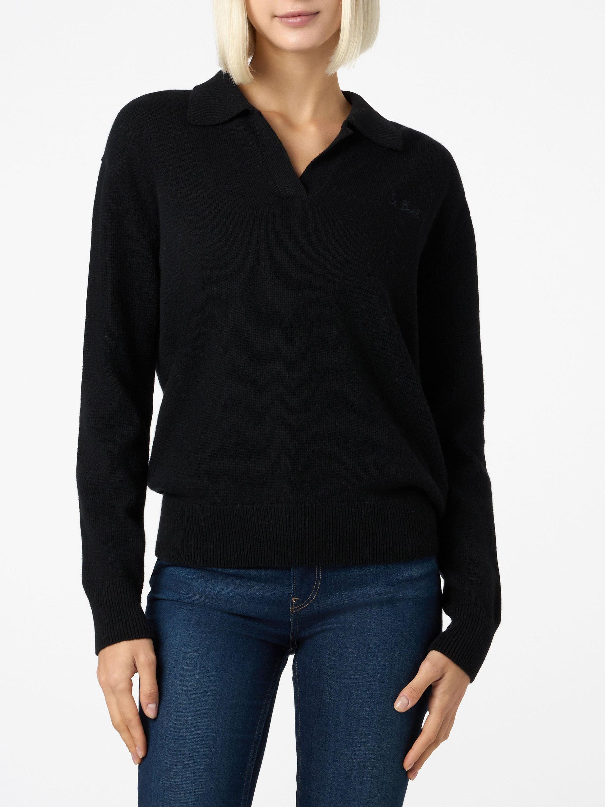 Schwarzer Damenpullover Eze aus Kaschmirmischung mit Polokragen