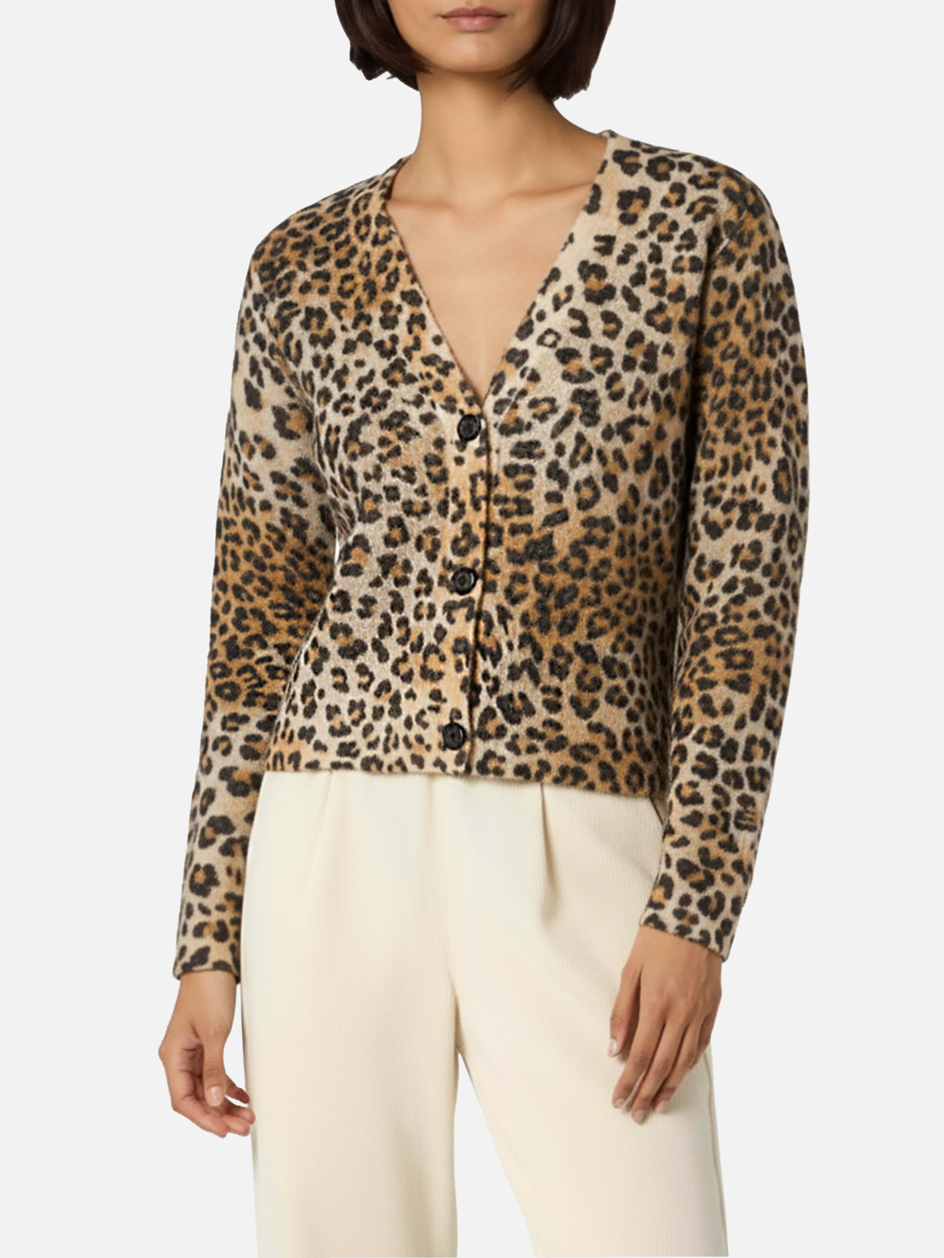 Wir präsentieren Lyza, eine Strickjacke, die nicht unbemerkt bleibt und perfekt für alle ist, die ihre Persönlichkeit zum Ausdruck bringen möchten. Die Puffärmel sind weich anzufassen und haben ein originelles Design. Sie verleihen ihr eine romantische und raffinierte Note. Die Puffärmel sind eine Reminiszenz an die 80er Jahre, während der Animalprint sie aktuell und modisch macht. Diese Strickjacke bietet eine bequeme Passform, perfekt für die kühleren Jahreszeiten. Das elegante Design wird durch zarte Details und hochwertige Verarbeitungen aufgewertet, wodurch Lyza sich ideal eignet, um sowohl lässige als auch formellere Looks zu vervollständigen. Mit ihrer femininen Silhouette und ihrem zeitlosen Stil ist Lyza ein Must-have in der Garderobe jeder Frau