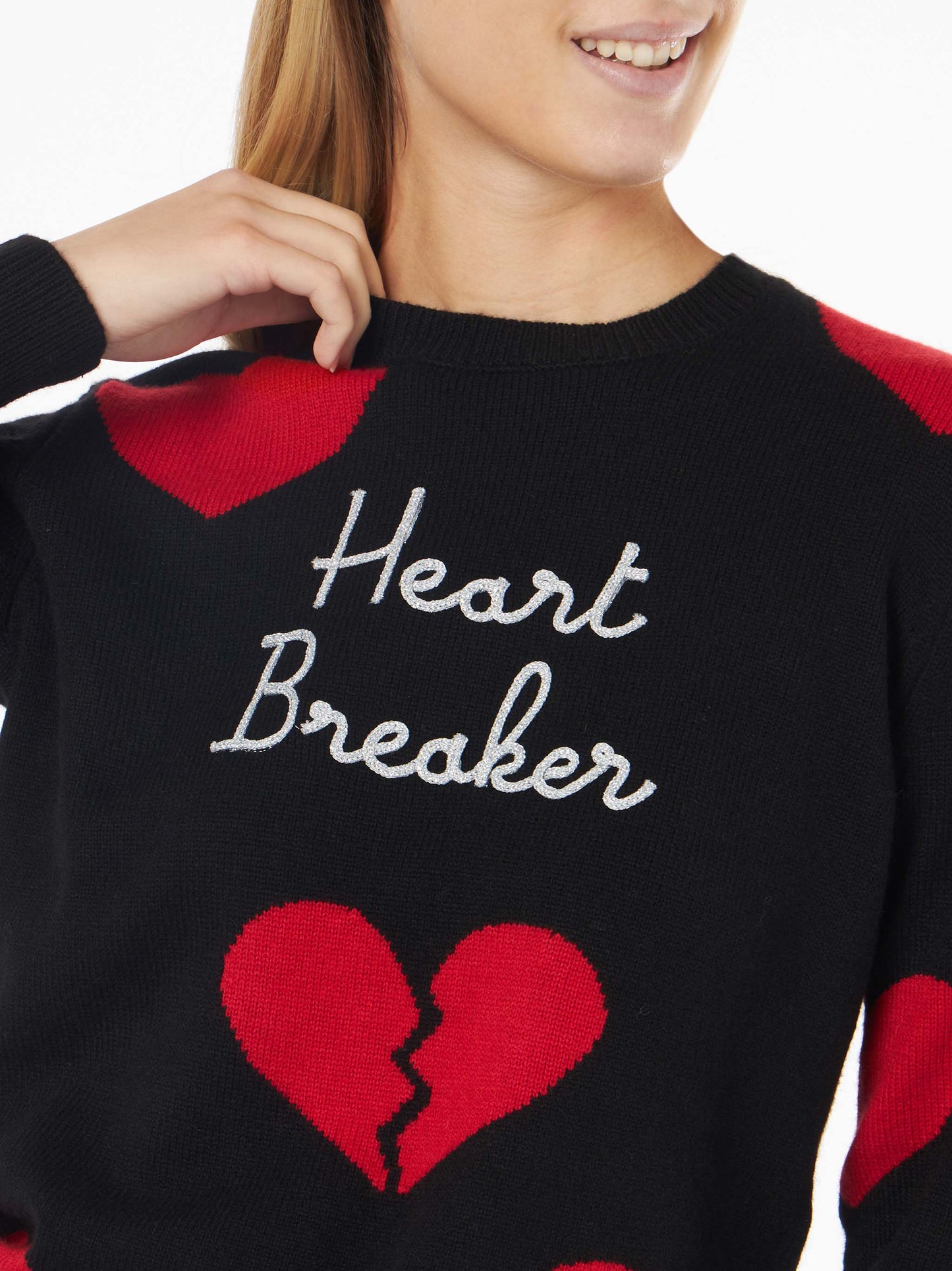 Damenpullover mit Rundhalsausschnitt und „Heart Breaker“-Stickerei