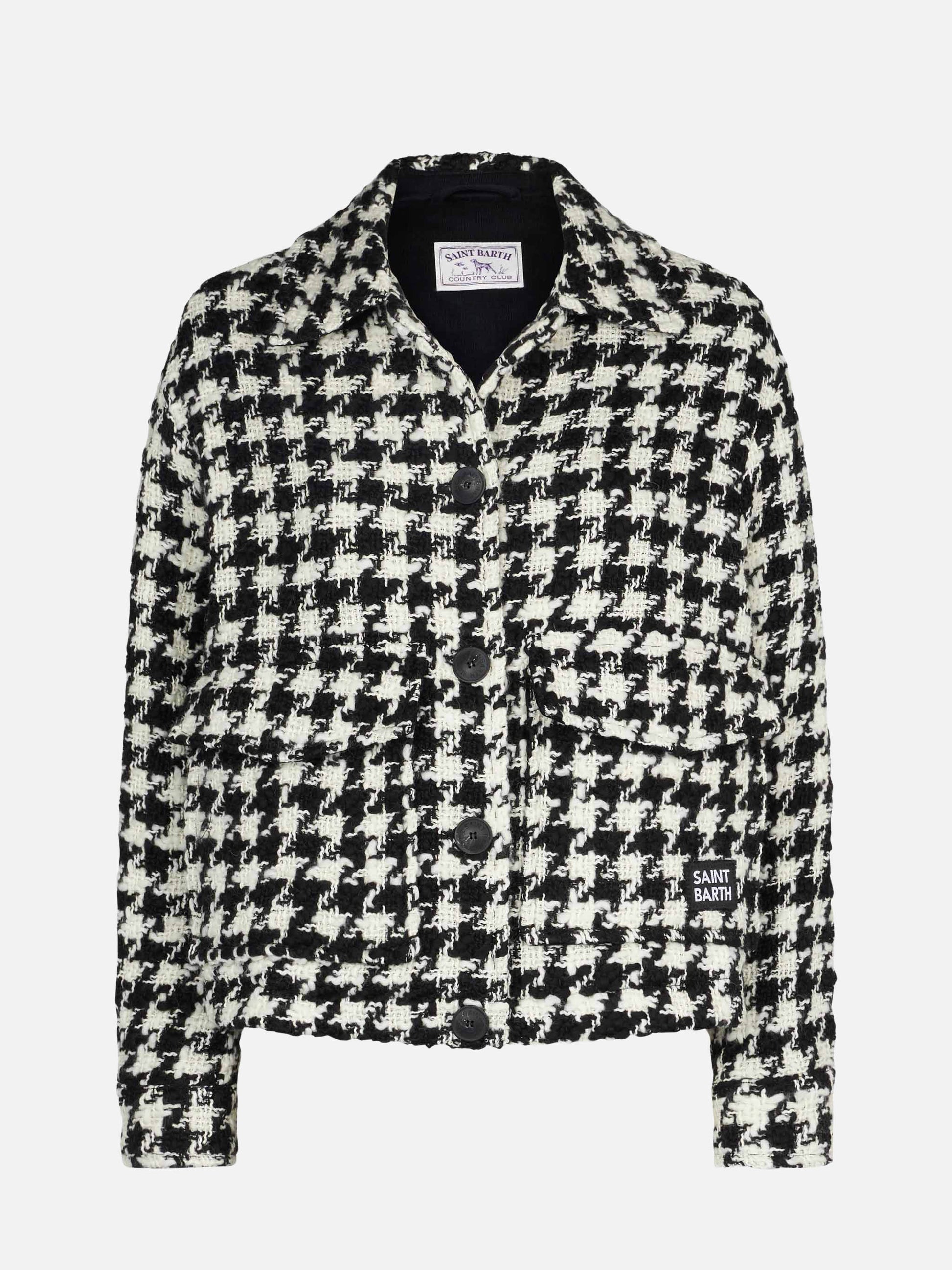 Kurz geschnittenes Damen-Overshirt mit Pied-de-Poul-Print