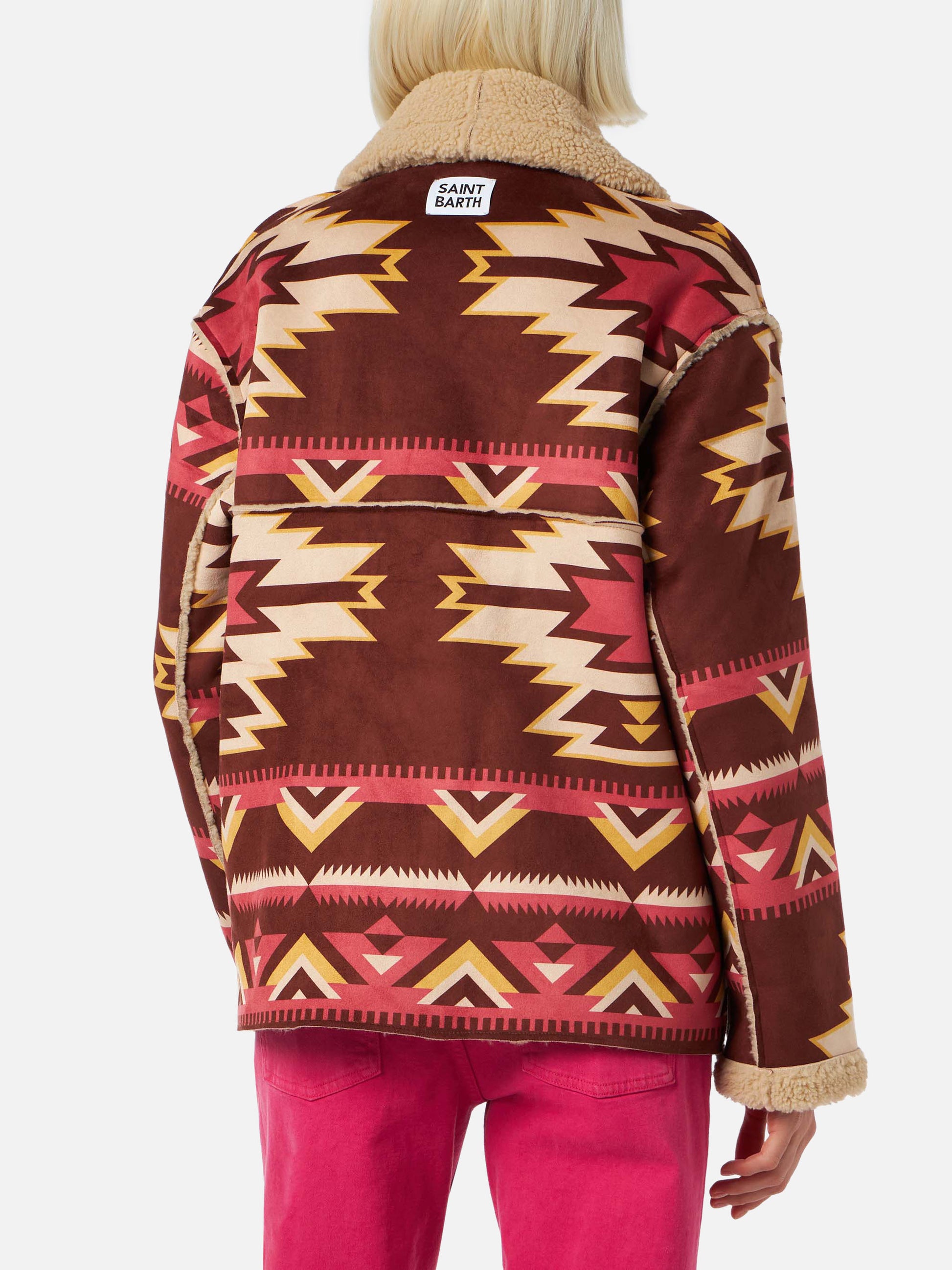 Allover-Print mit ethnischem Muster und beigem Sherling