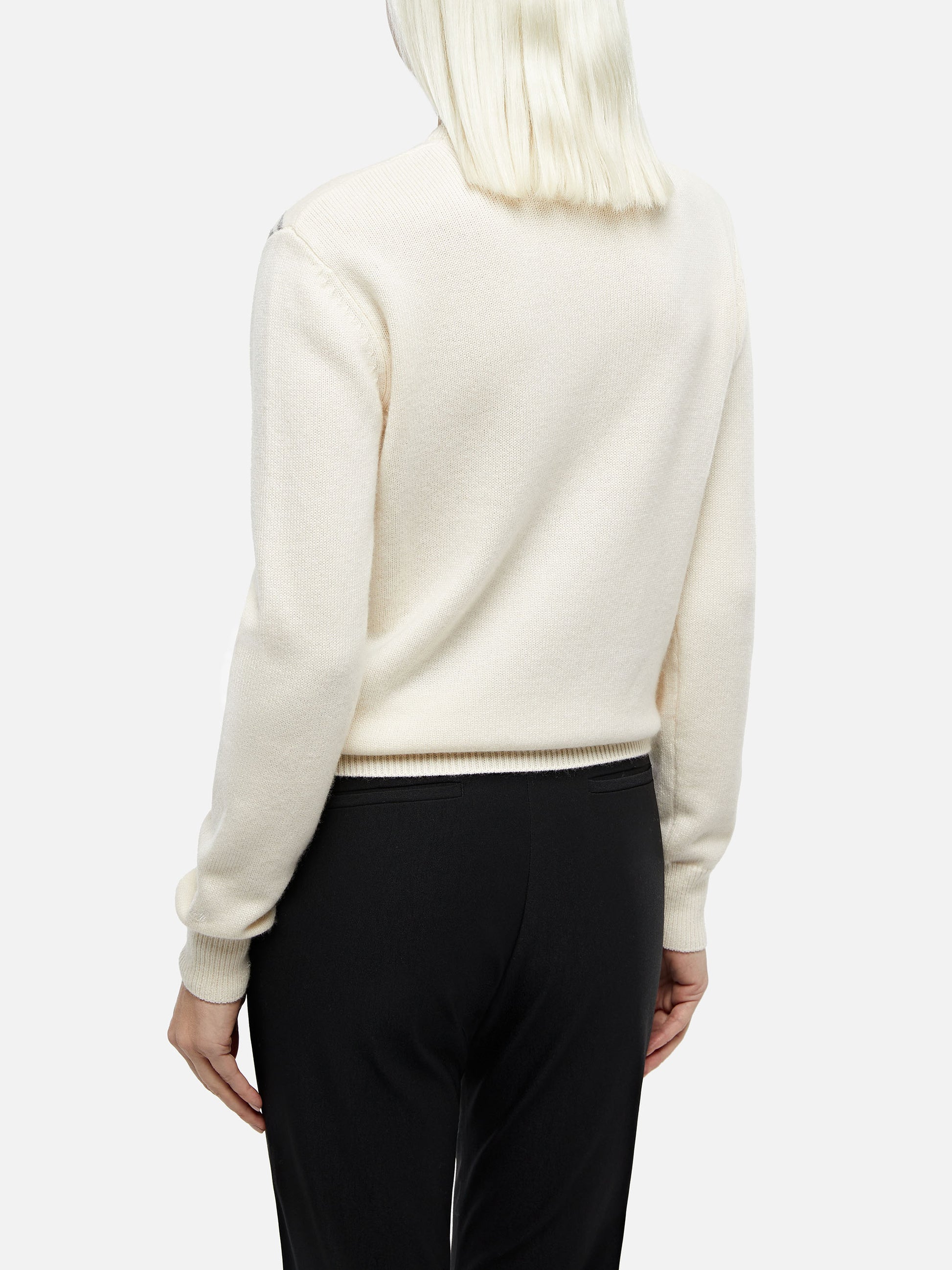 Weißer Damenpullover „New Queen“ mit Lovovia-Postkartendruck und Stickerei