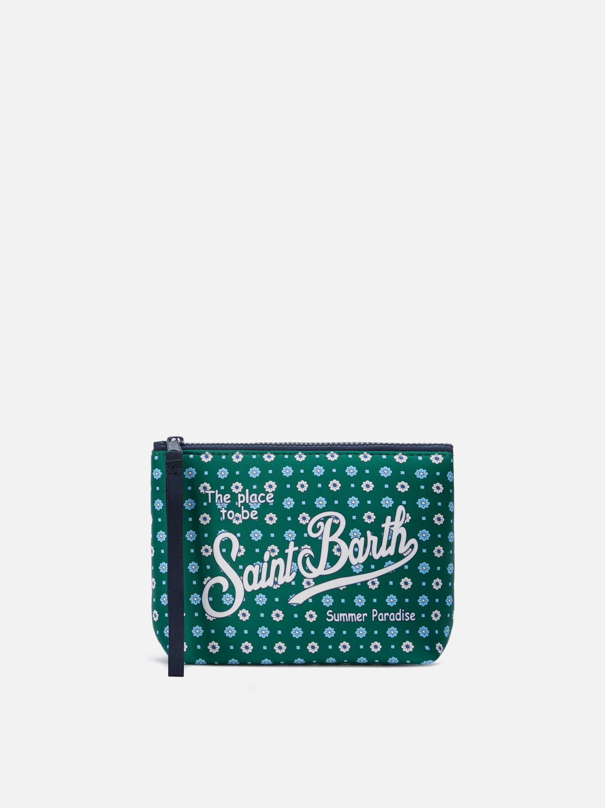 Pochette Aline in scuba verde con stampa a fiori all-over