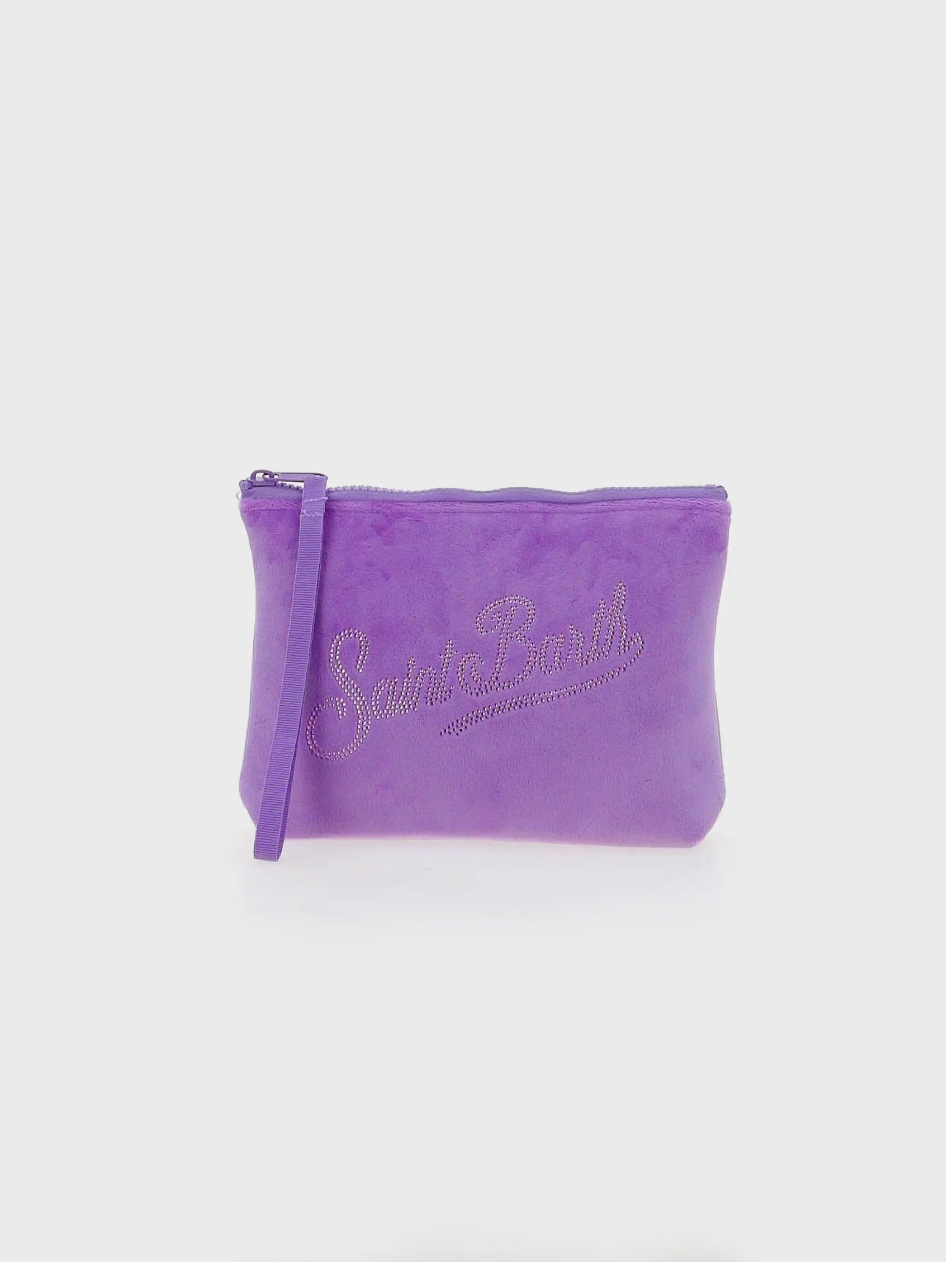 Pochette Aline in velluto lilla con logo Saint Barth in strass