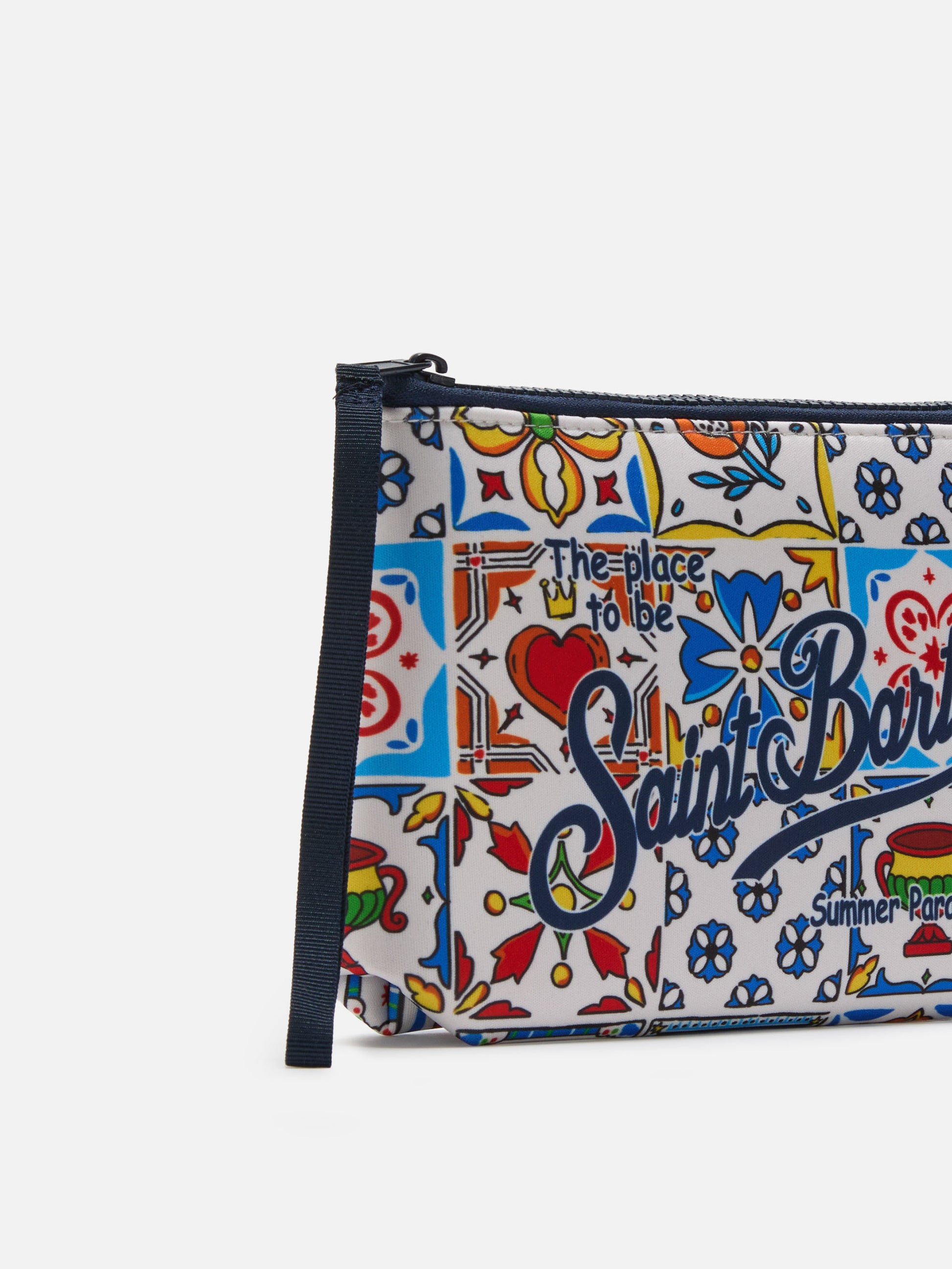https://it.mc2saintbarth.com/it/products/aline-scuba-pouch-with-majolica-print10742577004890Pochette Aline in scuba con stampa maiolica49.00https:files/UID_ALIN00107705L-ACCESSORY-POCHETTE-MULTICOLOR-MAJOLICA-MC2_1.jpghttps:files/UID_ALIN00107705L-ACCESSORY-POCHETTE-MULTICOLOR-MAJOLICA-MC2_1.jpgEURInStockPOCHETTE649874964826Aline Add to Cart649134276954AVADA - Best Sellers288708395192Borse - Visualizza tutti i modelli278950936760Pochette - Vedi tutto288760561848Pochette Aline287384633528SOTTO I 25€287727780024SOTTO I 60€ SOPRA I 25€La pochette Aline è pratica e versatile dal design contemporaneo. Realizzata in tessuto scuba, presenta una stampa maiolica multicolor ispirata alle ceramiche mediterranee che dona un tocco vivace e distintivo. Dotata di chiusura con zip e laccetto laterale in gros grain, è perfetta per organizzare l’essenziale con stile, facile da abbinare e utilizzare in ogni occasione.