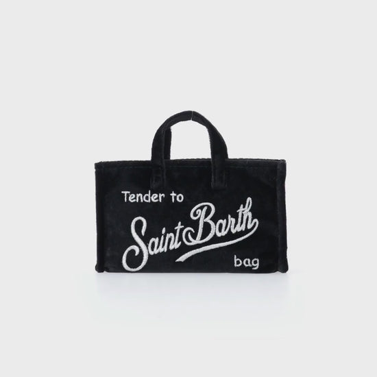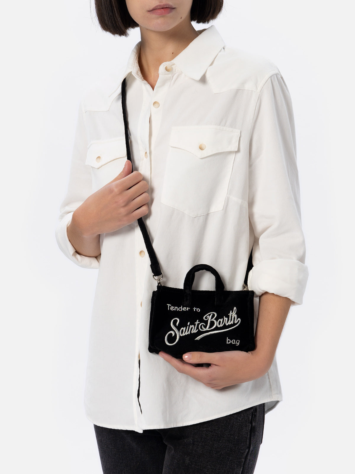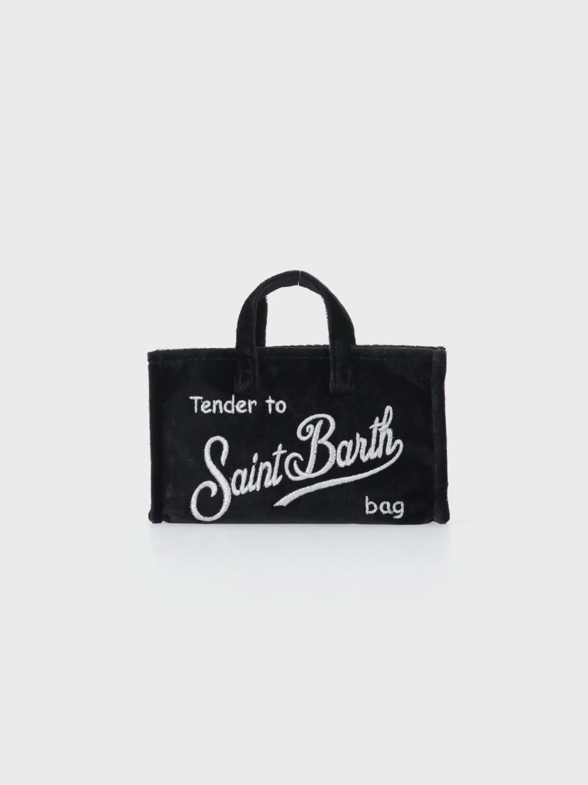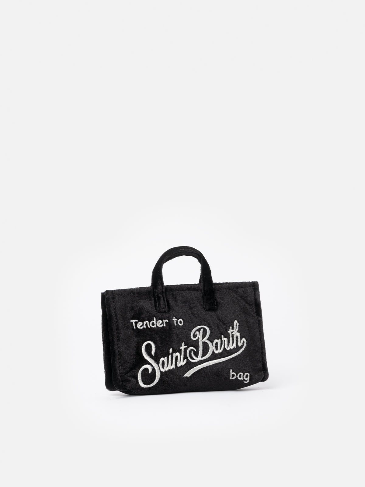 Borsa per telefono in velluto nero con ricamo del logo Saint Barth