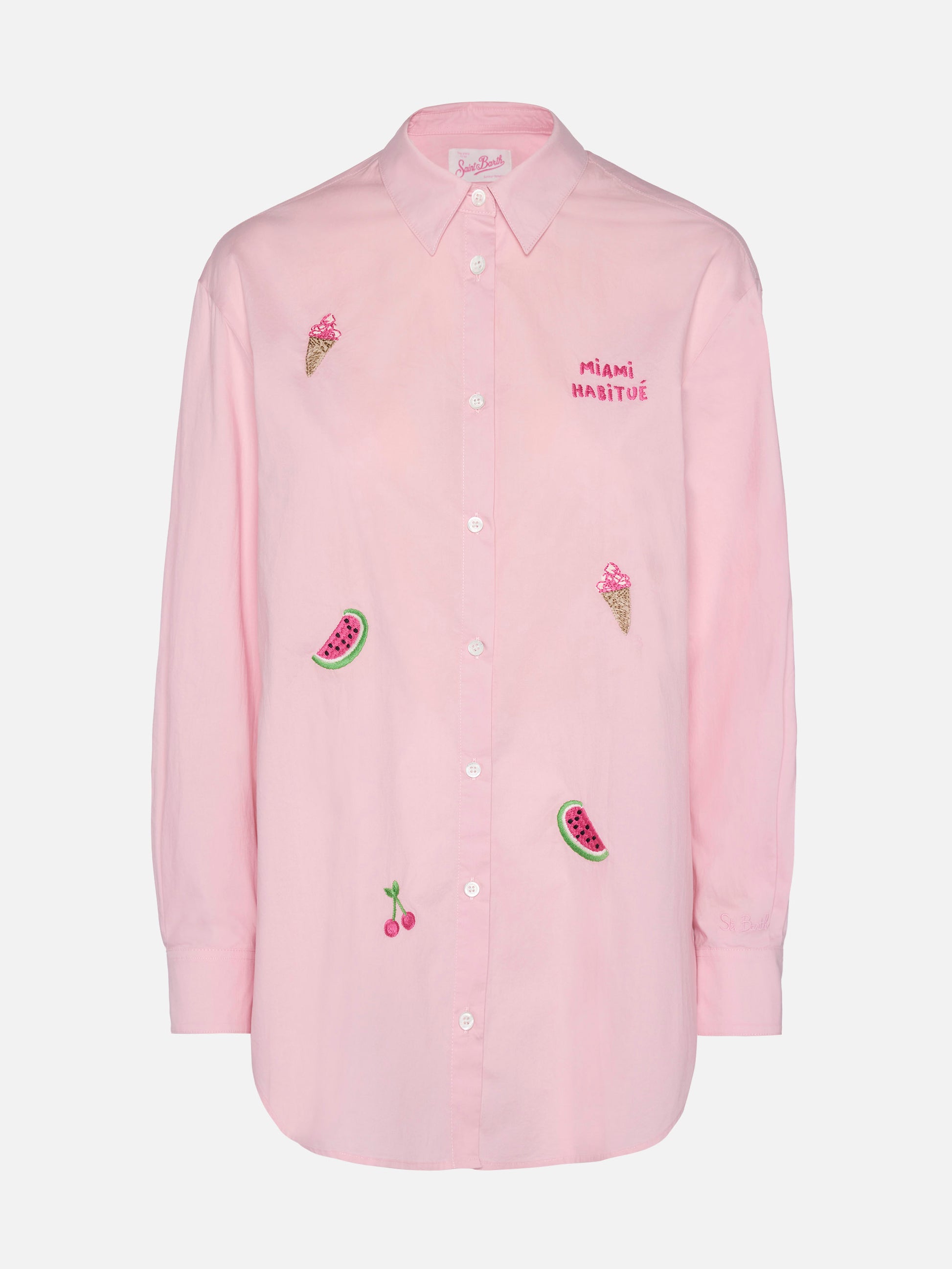 Brigitte camicia in cotone a righe con ricamo Miami habitué
