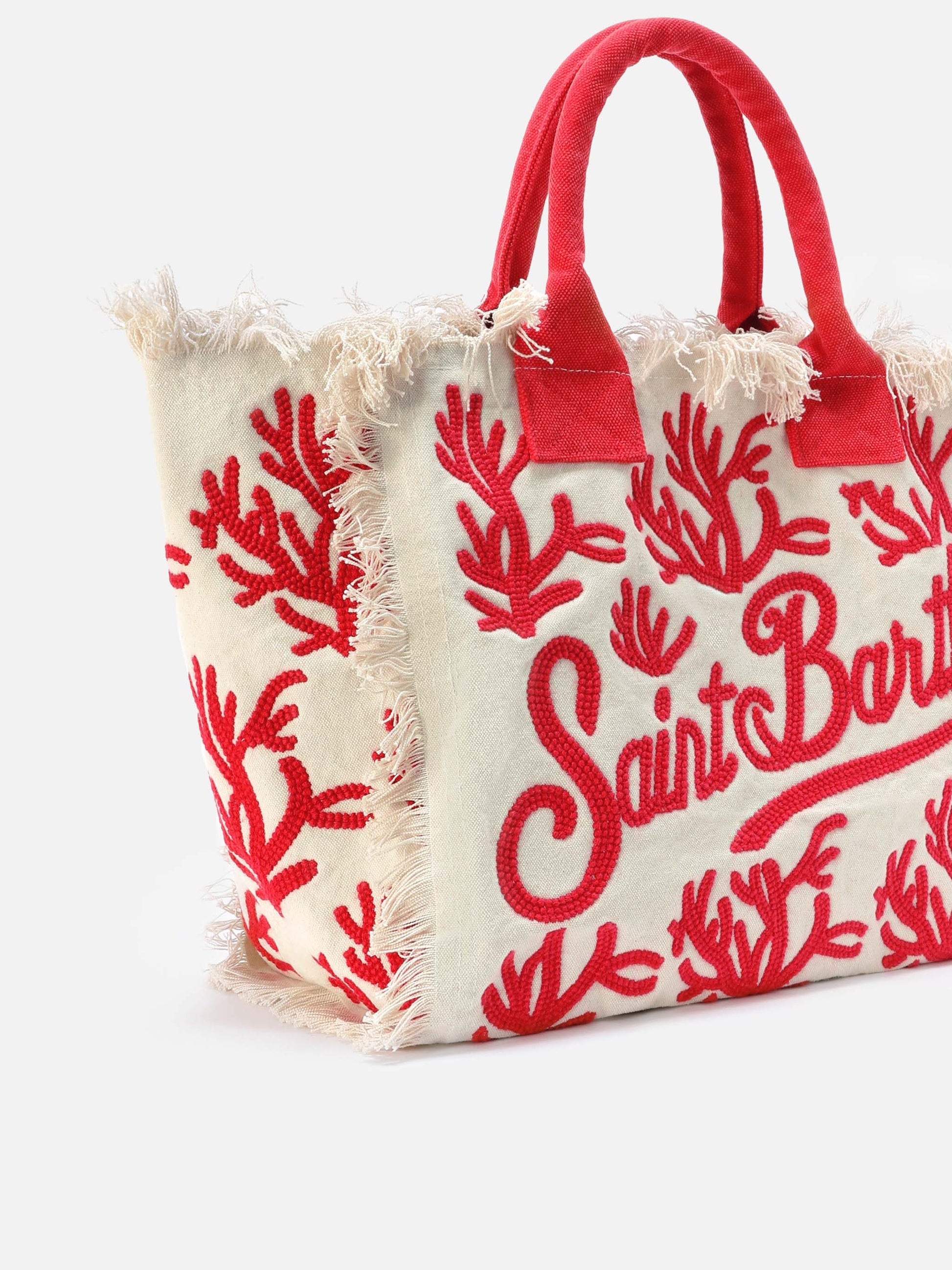 Borsa Vanity regular in canvas con ricamo coralli tufting