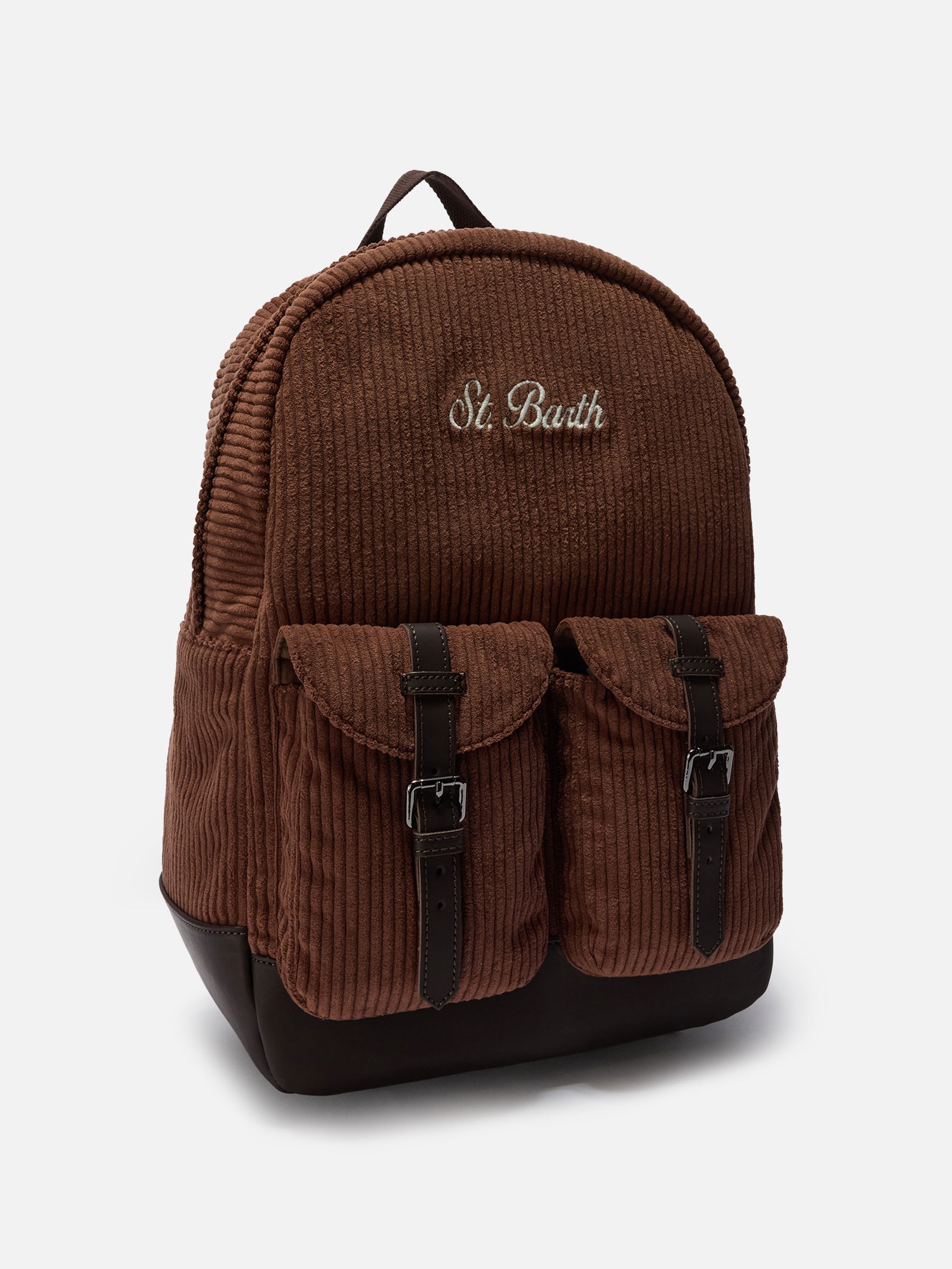 Zaino Cody Corduroy in misto lana marrone con dettagli in pelle