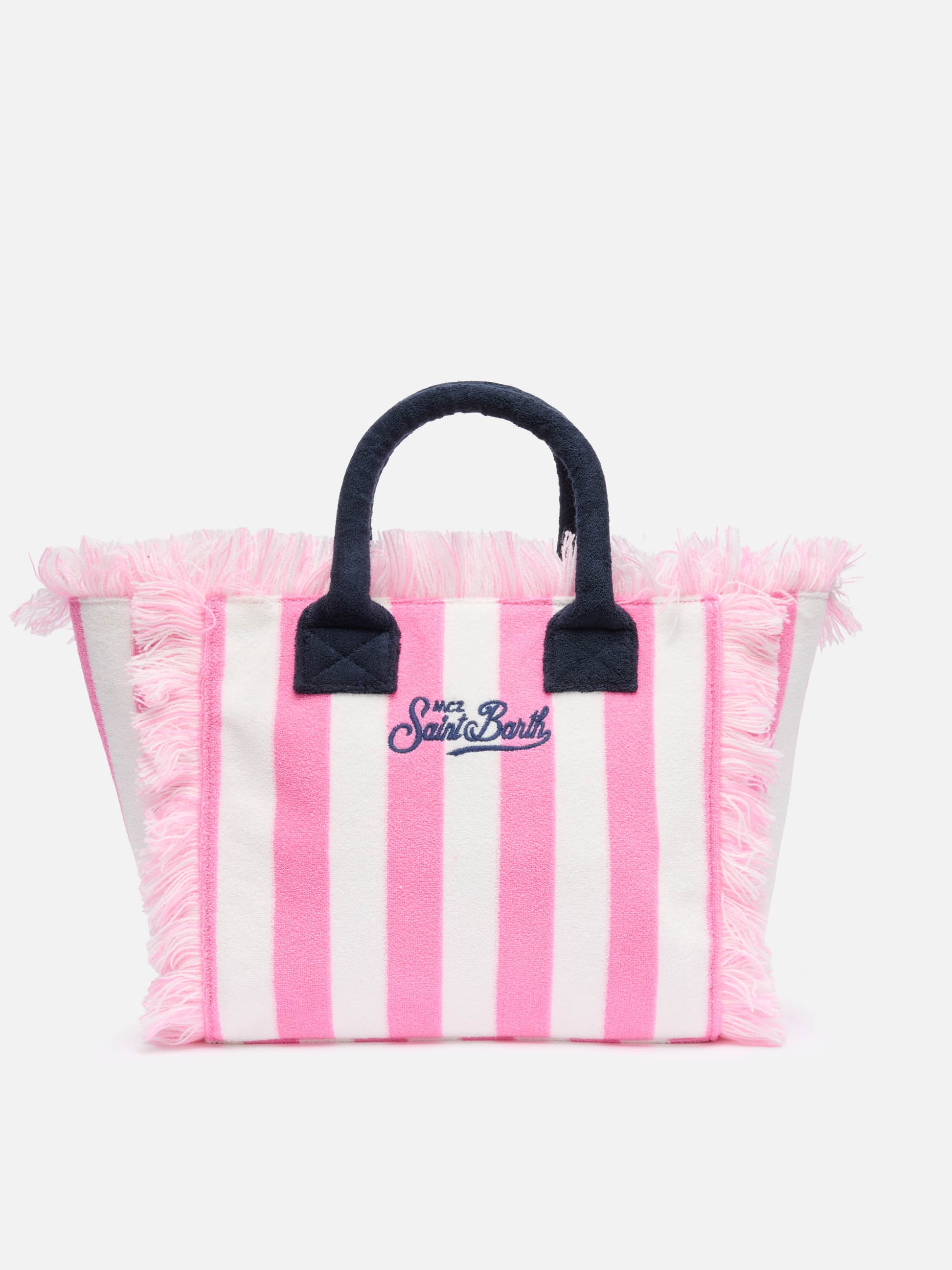 Borsa Colette in spugna rosa con stampa a righe rosa