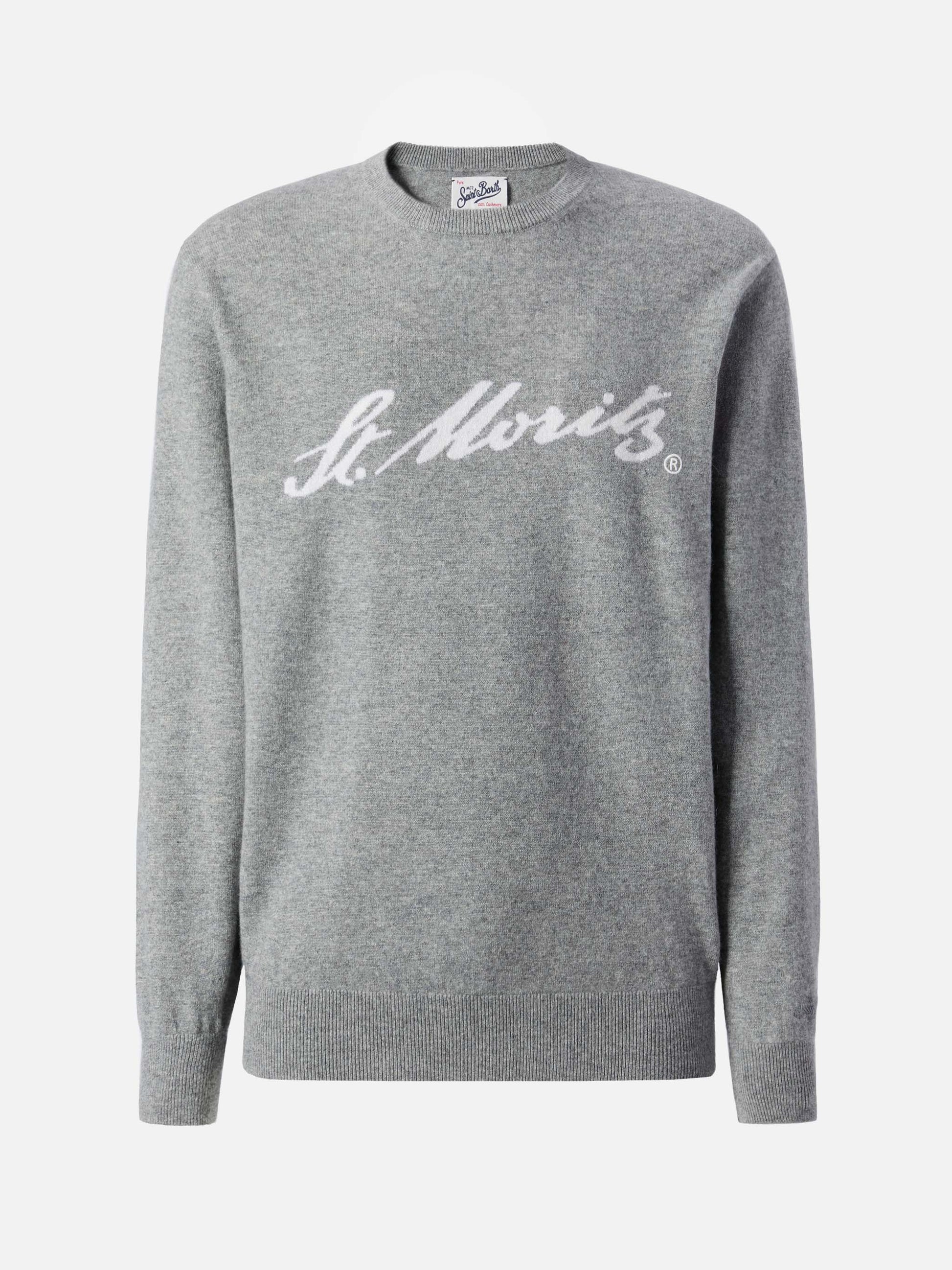 Maglione Heron Light in 100% CASHMERE grigio con intarsio St. Moritz | ST. MORITZ TOP OF THE WORLD