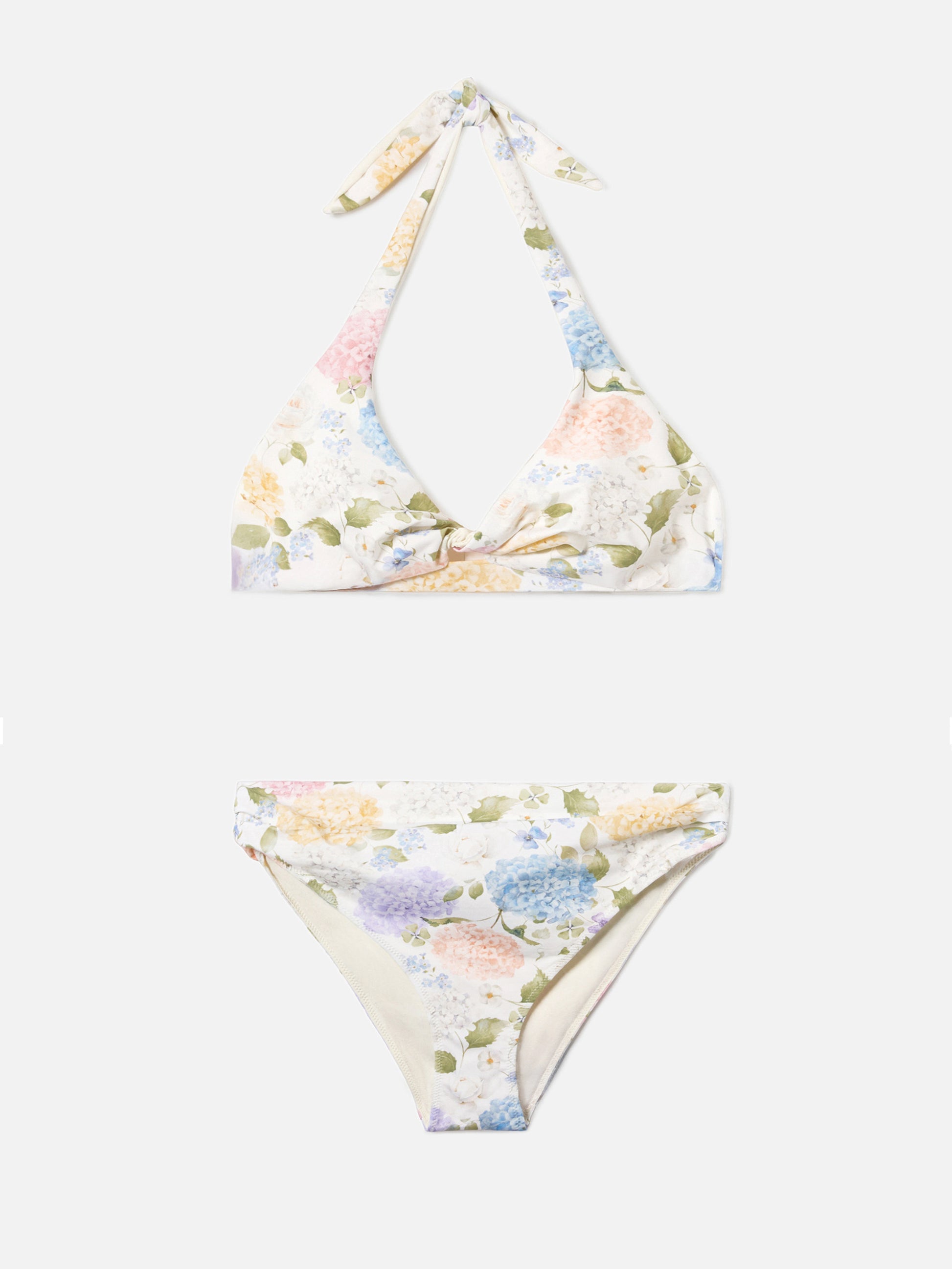 Il bikini Leda Sugar è realizzato in tessuto elasticizzato pensato per offrire comfort e supporto equilibrato. Il top Leda bralette è caratterizzato da una stampa floreale all-over nei toni panna, azzurro e rosa, arricchita da un dettaglio cut out che definisce il design con un’estetica contemporanea. L’allacciatura al collo e la chiusura con laccetti permettono di personalizzare la vestibilità assicurando stabilità e comfort, offrendo copertura ampia. Lo slip Sugar classico a vita media completa il bikini con stampa floreale all-over nei toni pastello su base chiara. La struttura foderata con copertura ampia valorizza la silhouette con un fit aderente e bilanciato.