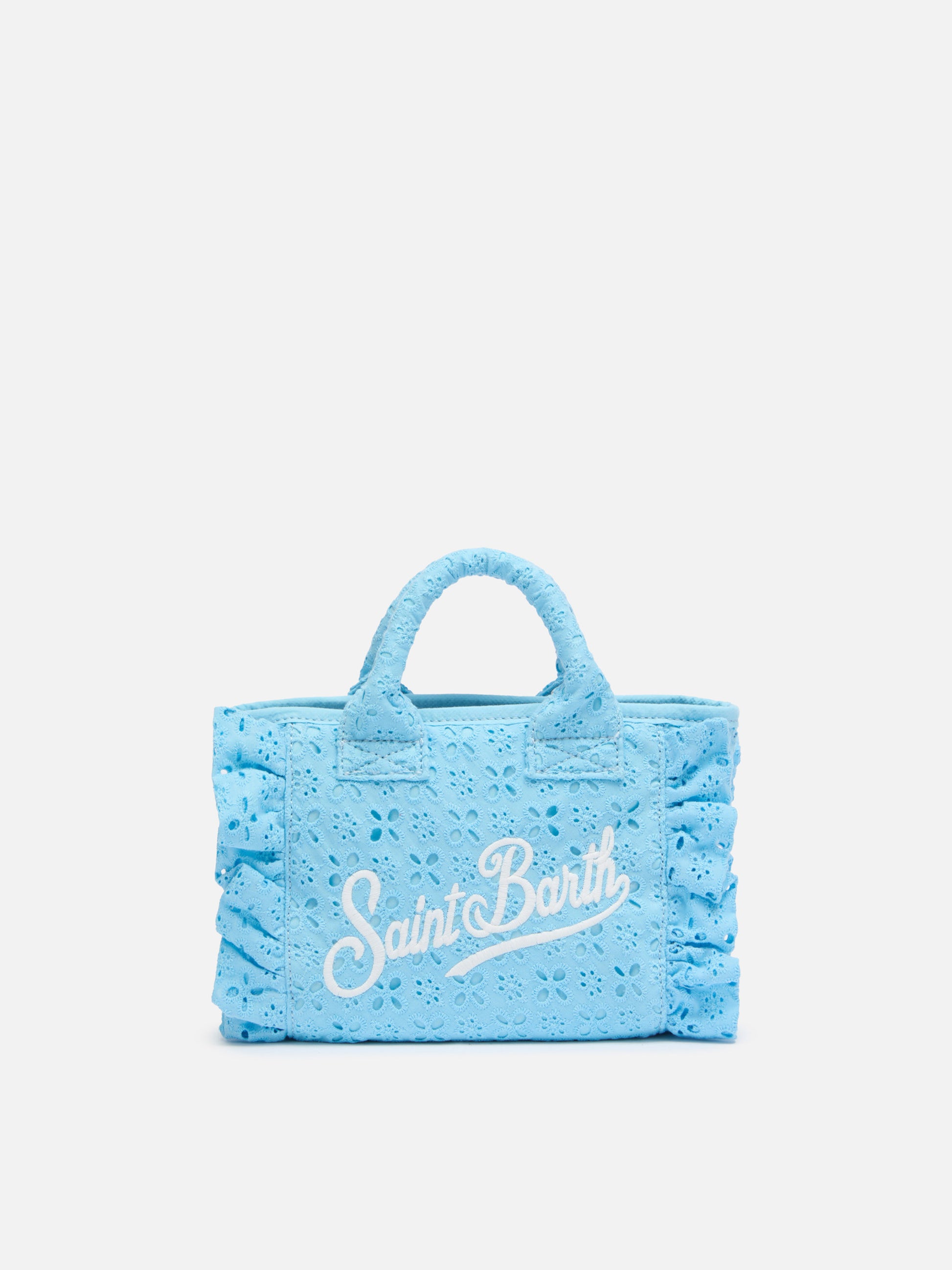 Borsa Mini Vanity Volant in pizzo Sangallo azzurro