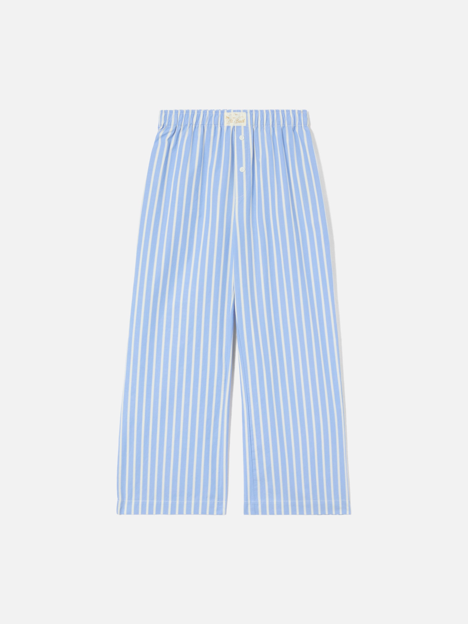 Pantaloni Doha in popeline a righe azzurre